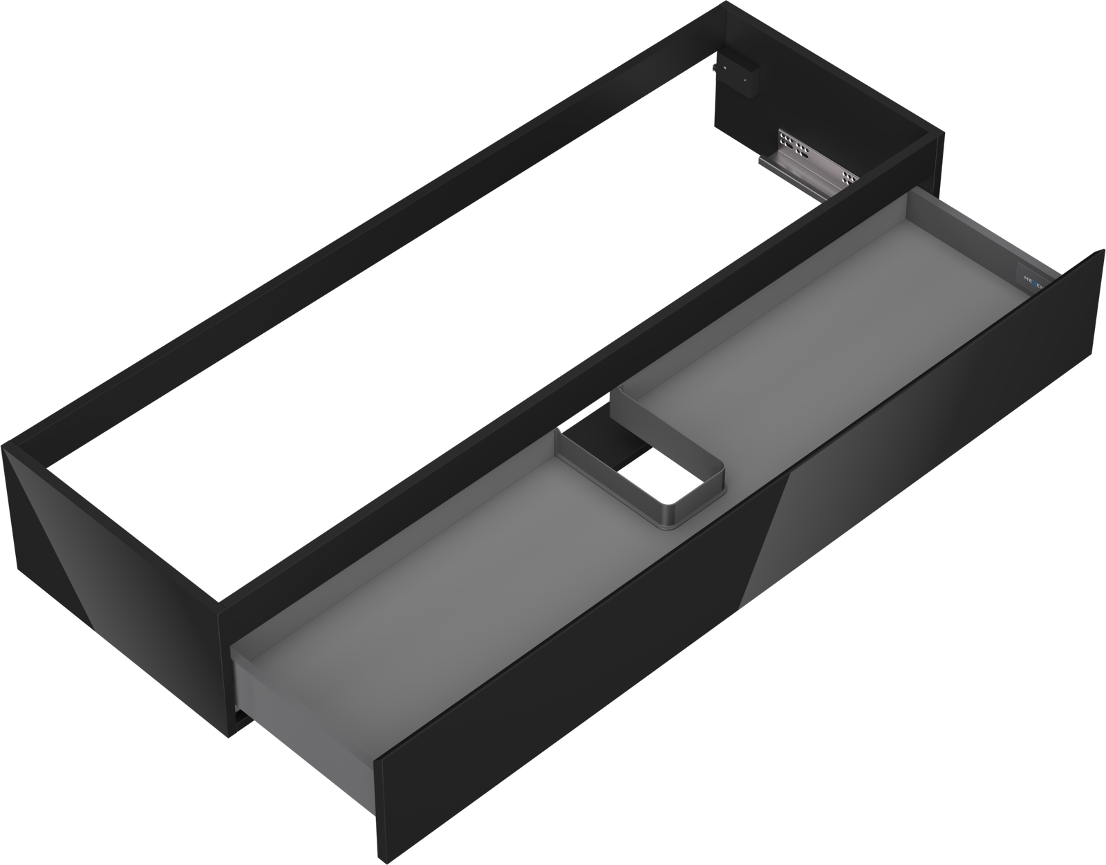 A fiókban lévő kivágás úgy van kialakítva, hogy befogadja a mosdó telepítéseknél szükséges szifont. Ennek köszönhetően a bútor teljesen funkcionálisan felszerelhető anélkül, hogy a fiók terének egy részét fel kellene áldozni a telepítés miatt.