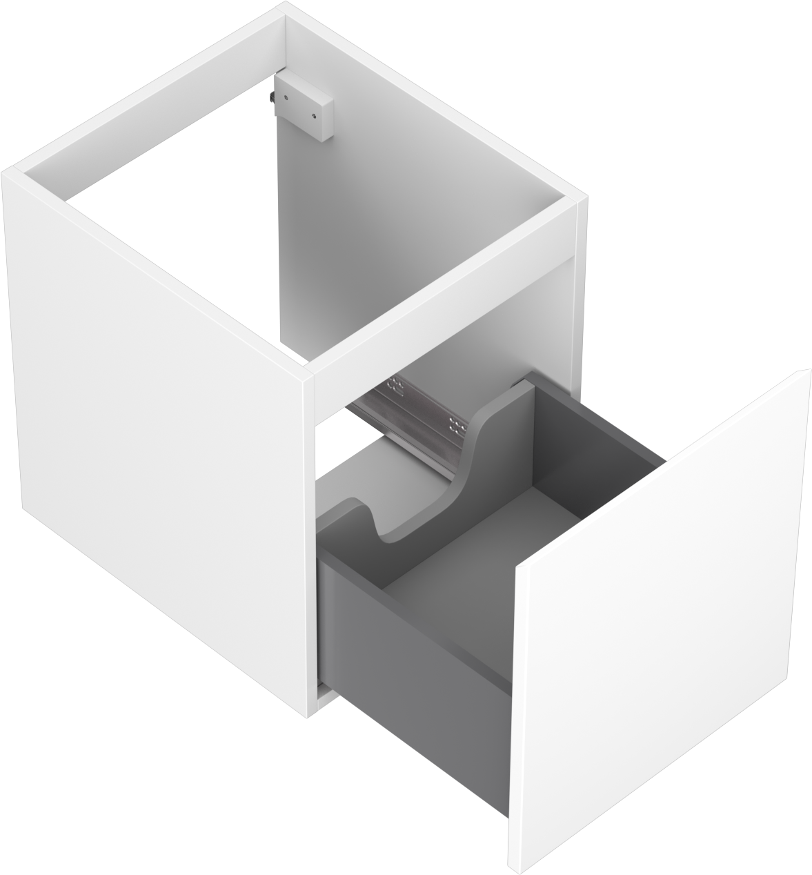 A fiókban lévő kivágás úgy van kialakítva, hogy befogadja a mosdó telepítéseknél szükséges szifont. Ennek köszönhetően a bútor teljesen funkcionálisan felszerelhető anélkül, hogy a fiók terének egy részét fel kellene áldozni a telepítés miatt.