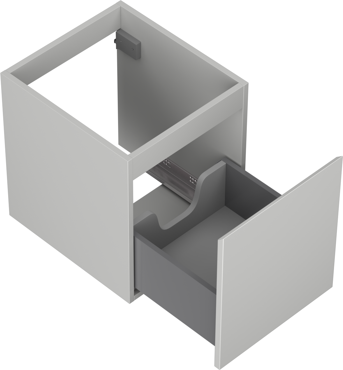 A fiókban lévő kivágás úgy van kialakítva, hogy befogadja a mosdó telepítéseknél szükséges szifont. Ennek köszönhetően a bútor teljesen funkcionálisan felszerelhető anélkül, hogy a fiók terének egy részét fel kellene áldozni a telepítés miatt.