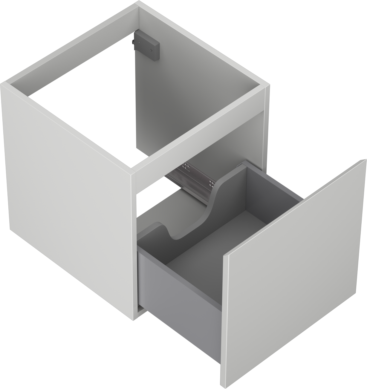 A fiókban lévő kivágás úgy van kialakítva, hogy befogadja a mosdó telepítéseknél szükséges szifont. Ennek köszönhetően a bútor teljesen funkcionálisan felszerelhető anélkül, hogy a fiók terének egy részét fel kellene áldozni a telepítés miatt.
