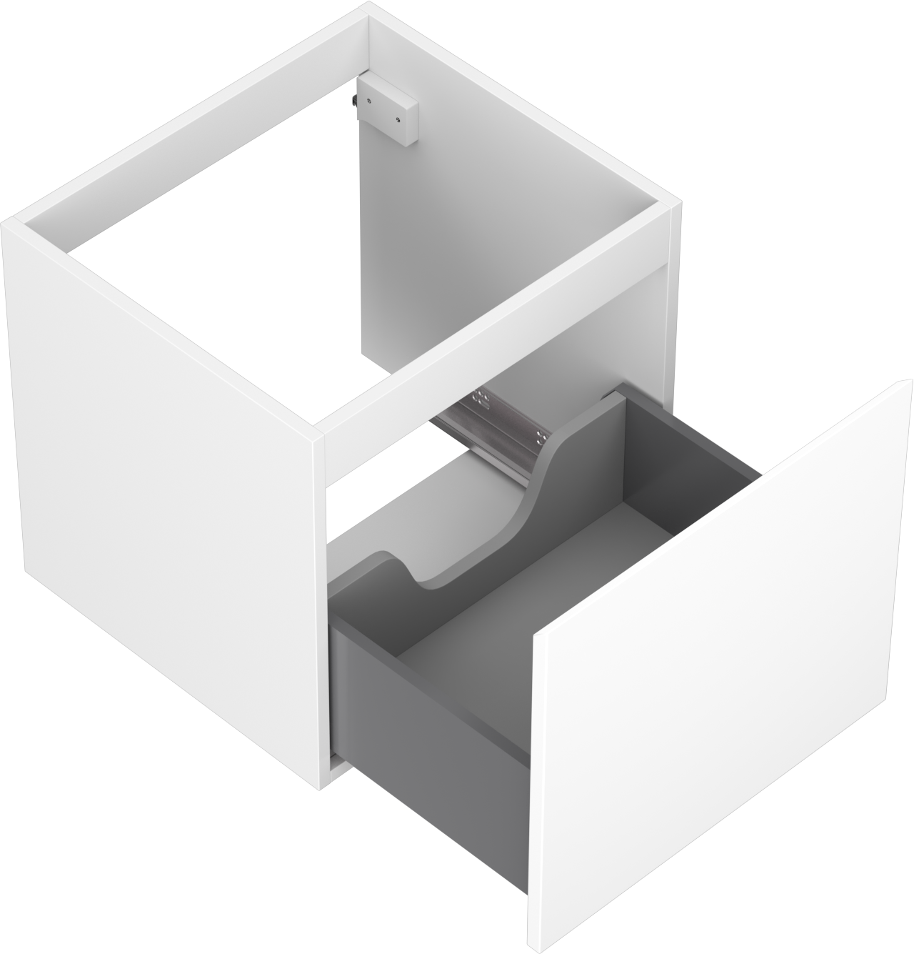 A fiókban lévő kivágás úgy van kialakítva, hogy befogadja a mosdó telepítéseknél szükséges szifont. Ennek köszönhetően a bútor teljesen funkcionálisan felszerelhető anélkül, hogy a fiók terének egy részét fel kellene áldozni a telepítés miatt.