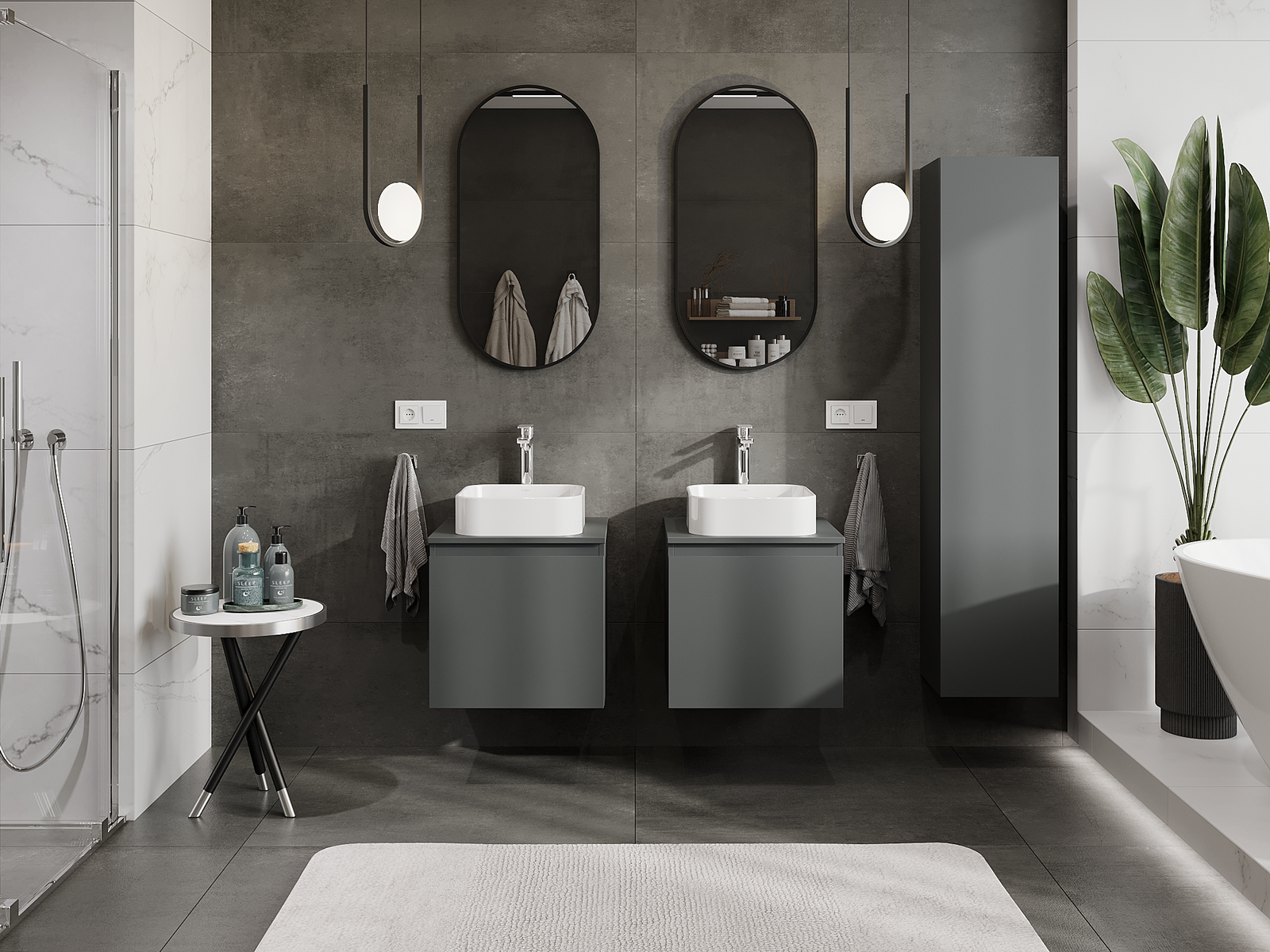 A moduláris fürdőszobabútorainkat különböző színkonfigurációkban lehet kombinálni, lehetővé téve a teljes személyre szabást. Kiválasztható mind az egyes elemek megjelenése, mind pedig funkciói, ami lehetővé teszi a bútorok személyes stílus- és használati preferenciákhoz való igazítását.