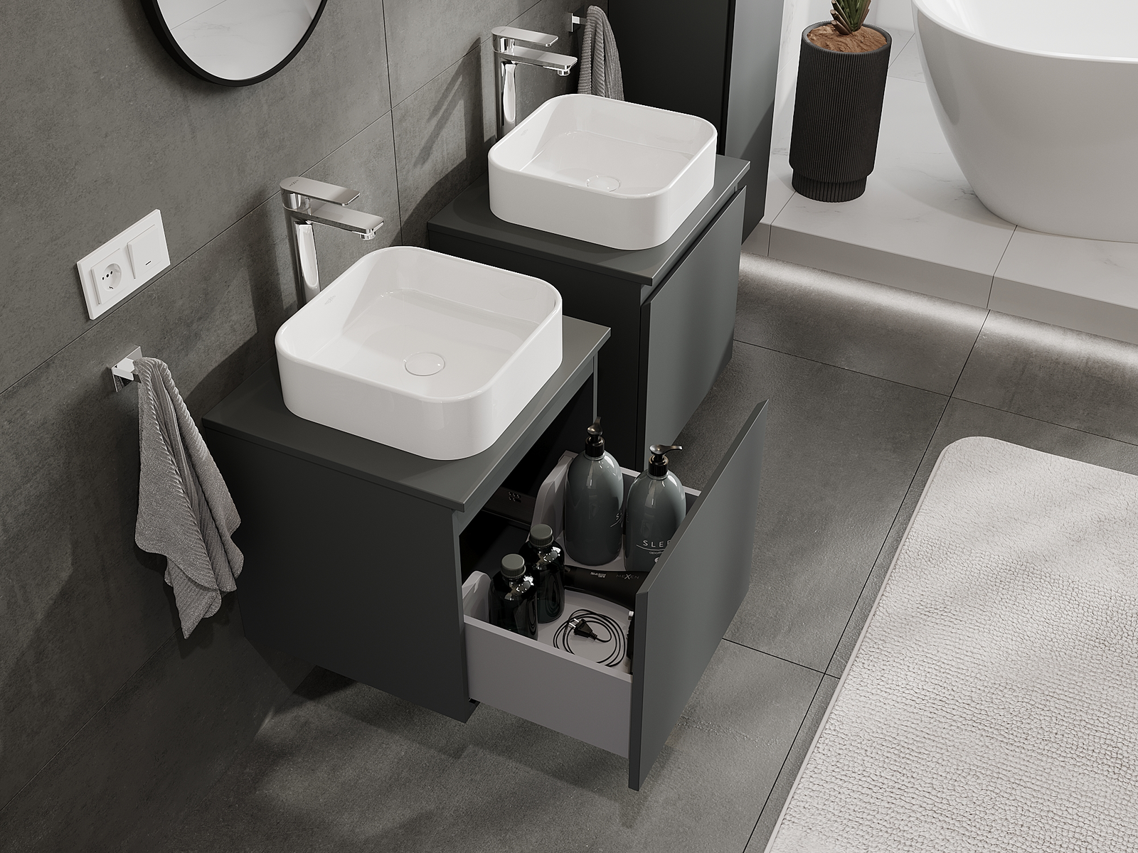 Mexen Orio fürdőszobai szekrény mosdó alá 50 cm, 1 fiók, grafit matt - 91A10-05047-1-BF66