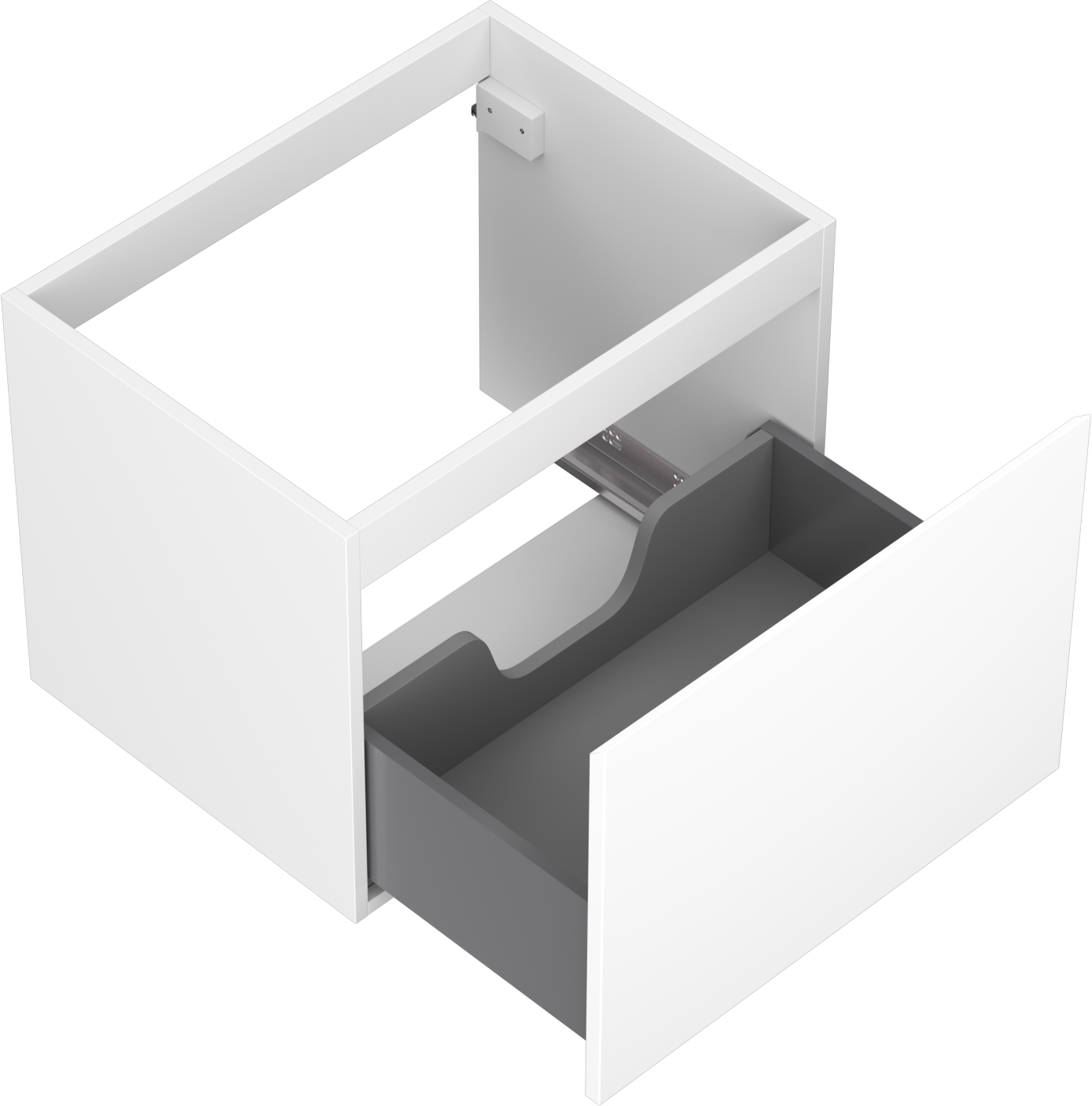 A fiókban lévő kivágás úgy van kialakítva, hogy befogadja a mosdó telepítéseknél szükséges szifont. Ennek köszönhetően a bútor teljesen funkcionálisan felszerelhető anélkül, hogy a fiók terének egy részét fel kellene áldozni a telepítés miatt.
