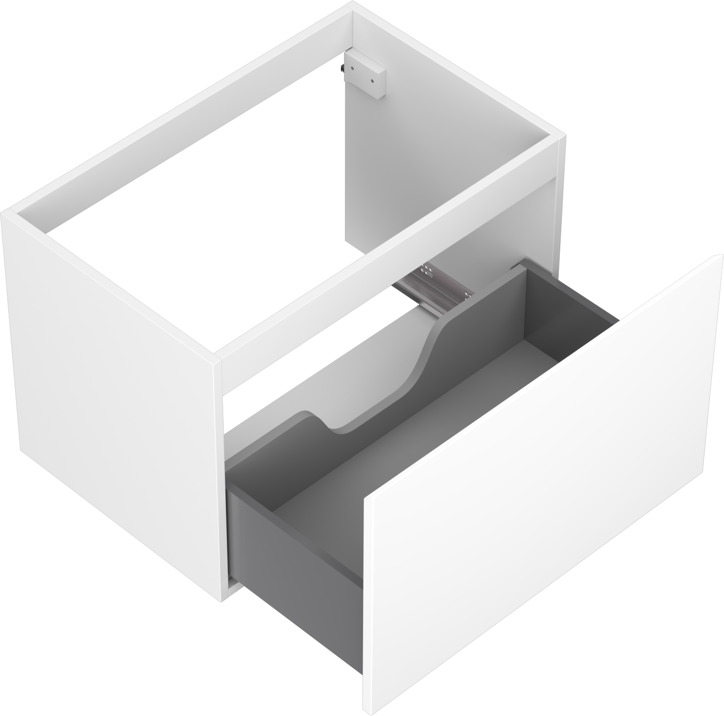 A fiókban lévő kivágás úgy van kialakítva, hogy befogadja a mosdó telepítéseknél szükséges szifont. Ennek köszönhetően a bútor teljesen funkcionálisan felszerelhető anélkül, hogy a fiók terének egy részét fel kellene áldozni a telepítés miatt.