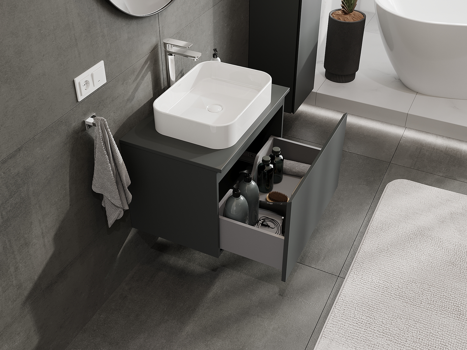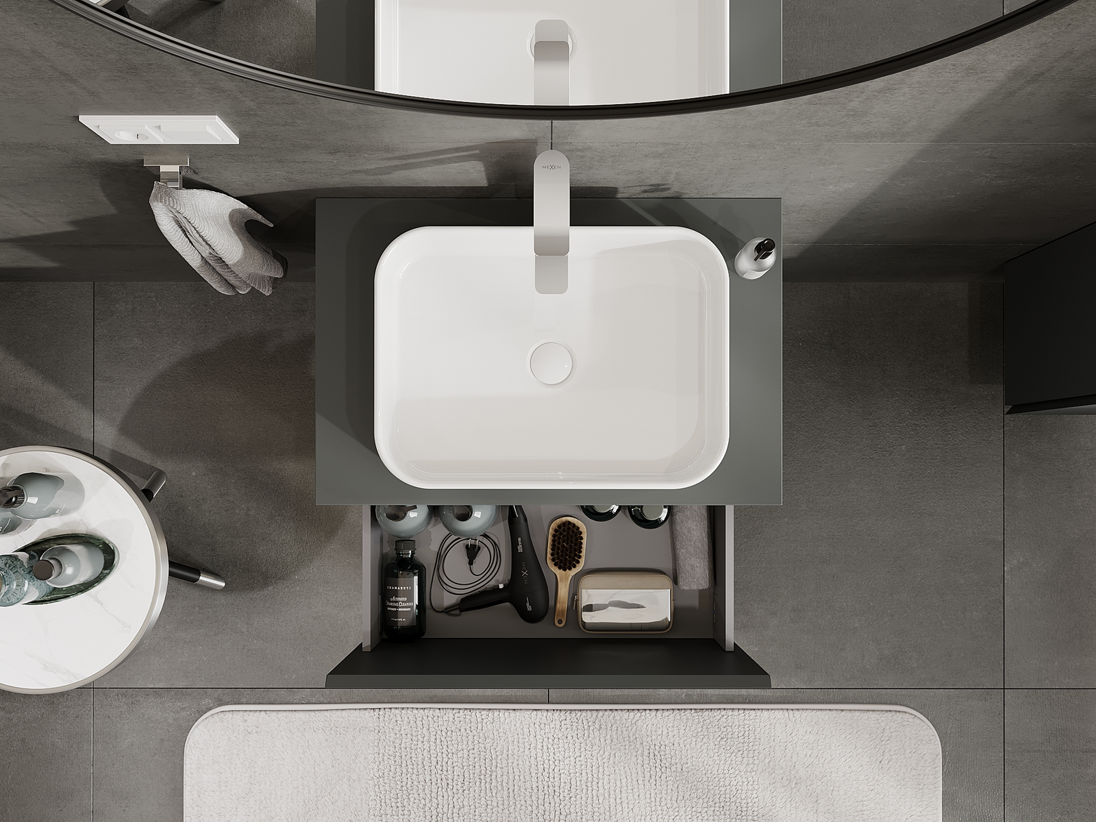Mexen Orio fürdőszobai szekrény mosdó alá 70 cm, 1 fiók, grafit matt - 91A10-07047-1-BF66
