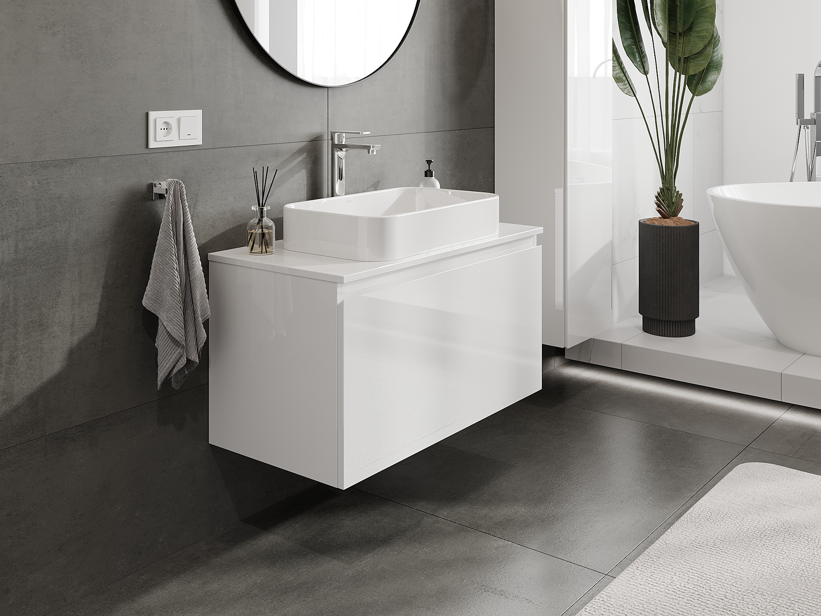 A moduláris fürdőszobabútorainkat különböző színkonfigurációkban lehet kombinálni, lehetővé téve a teljes személyre szabást. Kiválasztható mind az egyes elemek megjelenése, mind pedig funkciói, ami lehetővé teszi a bútorok személyes stílus- és használati preferenciákhoz való igazítását.