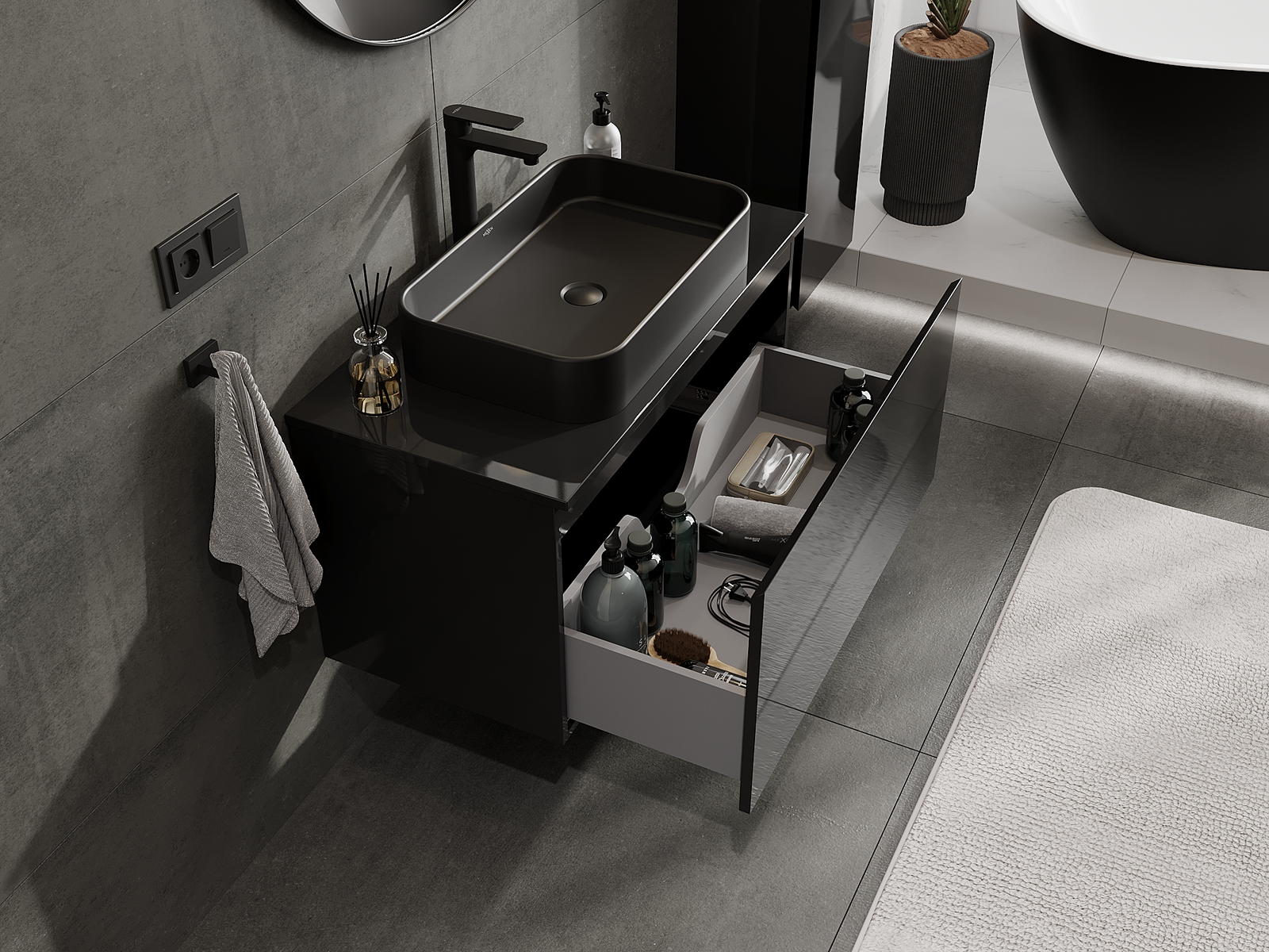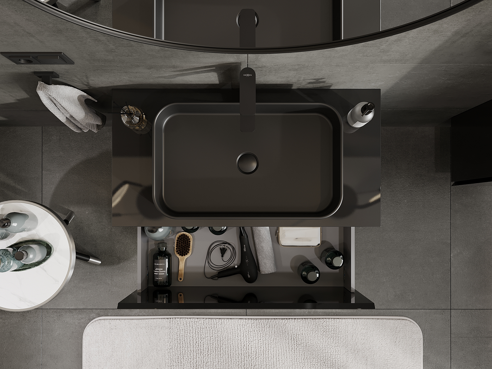 Mexen Orio fürdőszobai mosdószekrény 90 cm, 1 fiók, fekete fényes - 91A10-09047-1-BF70
