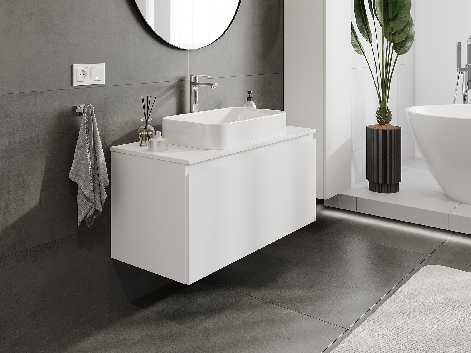 A moduláris fürdőszobabútorainkat különböző színkonfigurációkban lehet kombinálni, lehetővé téve a teljes személyre szabást. Kiválasztható mind az egyes elemek megjelenése, mind pedig funkciói, ami lehetővé teszi a bútorok személyes stílus- és használati preferenciákhoz való igazítását.