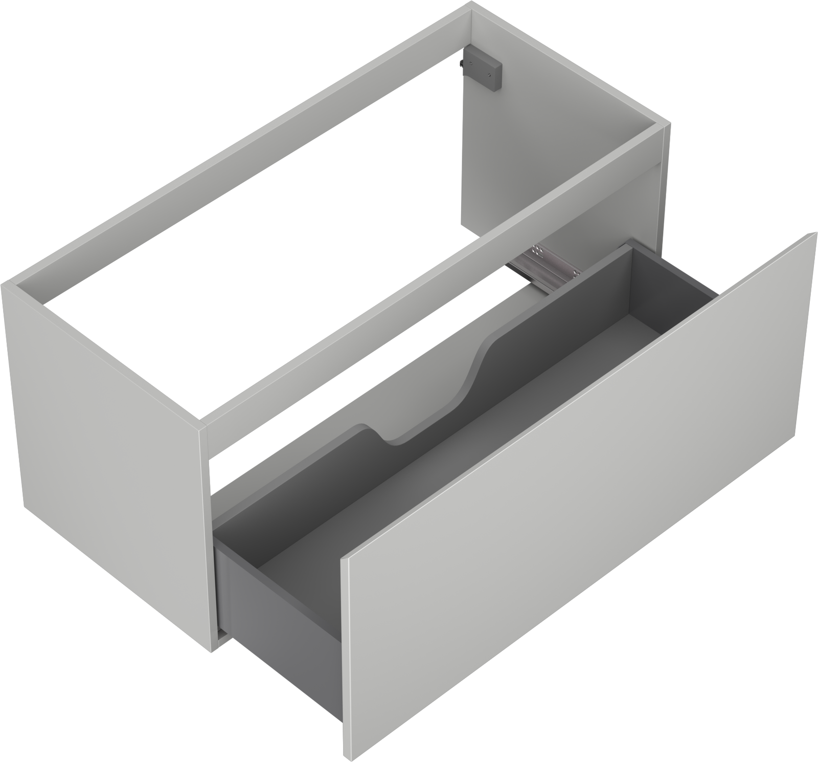 A fiókban lévő kivágás úgy van kialakítva, hogy befogadja a mosdó telepítéseknél szükséges szifont. Ennek köszönhetően a bútor teljesen funkcionálisan felszerelhető anélkül, hogy a fiók terének egy részét fel kellene áldozni a telepítés miatt.