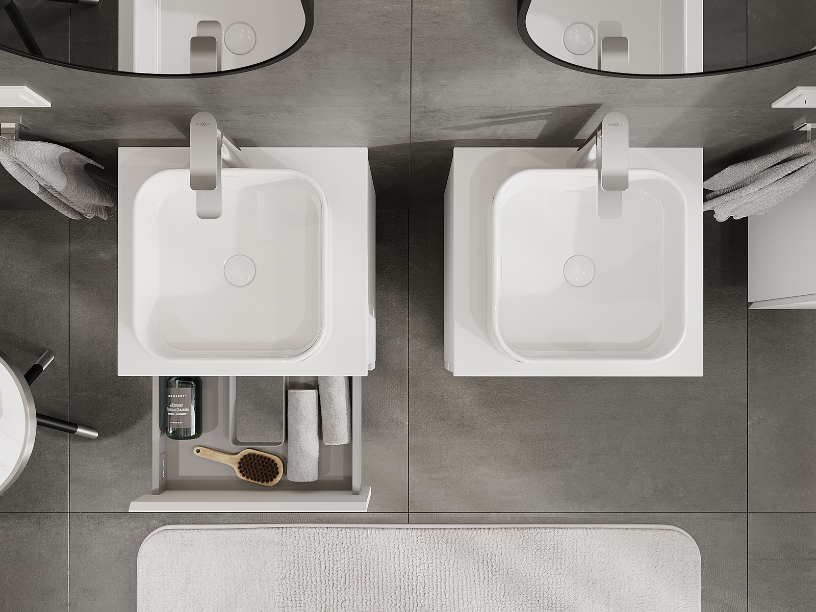 A fiókban lévő kivágás úgy van kialakítva, hogy befogadja a mosdó telepítéseknél szükséges szifont. Ennek köszönhetően a bútor teljesen funkcionálisan felszerelhető anélkül, hogy a fiók terének egy részét fel kellene áldozni a telepítés miatt.