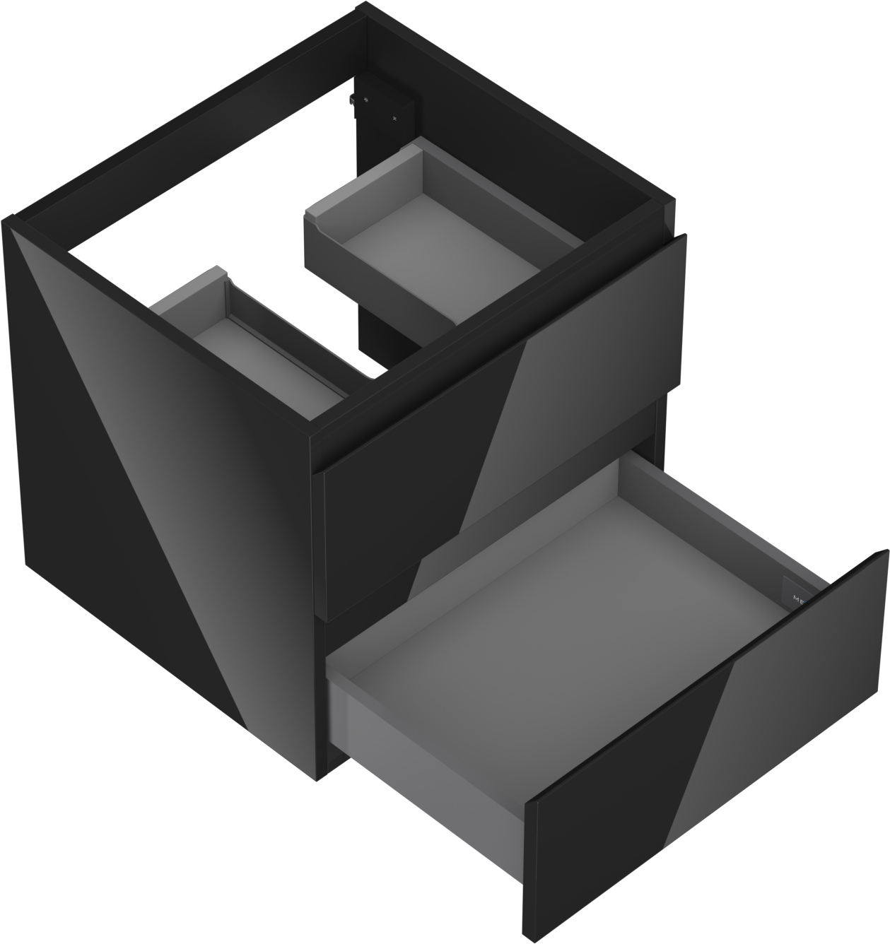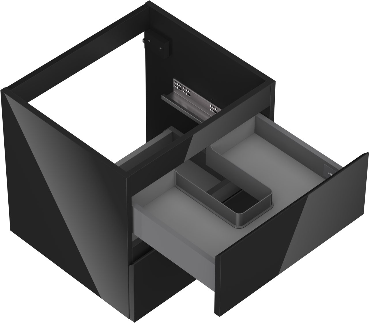 A fiókban lévő kivágás úgy van kialakítva, hogy befogadja a mosdó telepítéseknél szükséges szifont. Ennek köszönhetően a bútor teljesen funkcionálisan felszerelhető anélkül, hogy a fiók terének egy részét fel kellene áldozni a telepítés miatt.