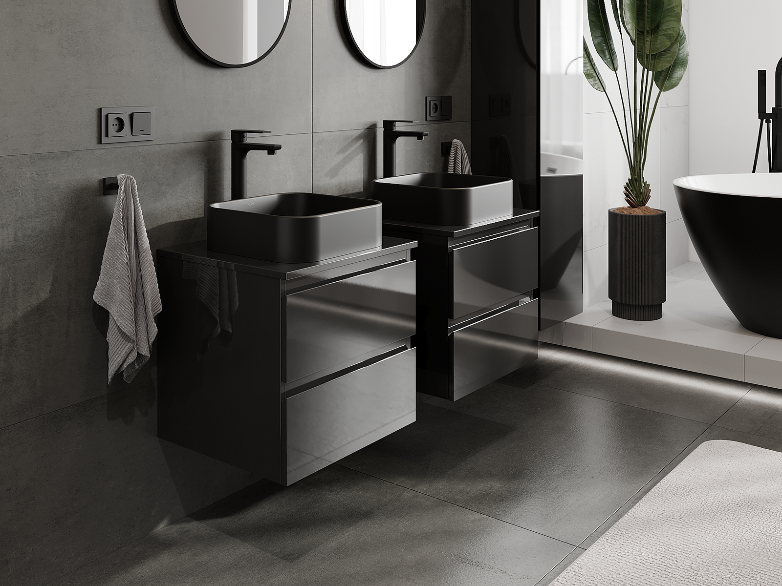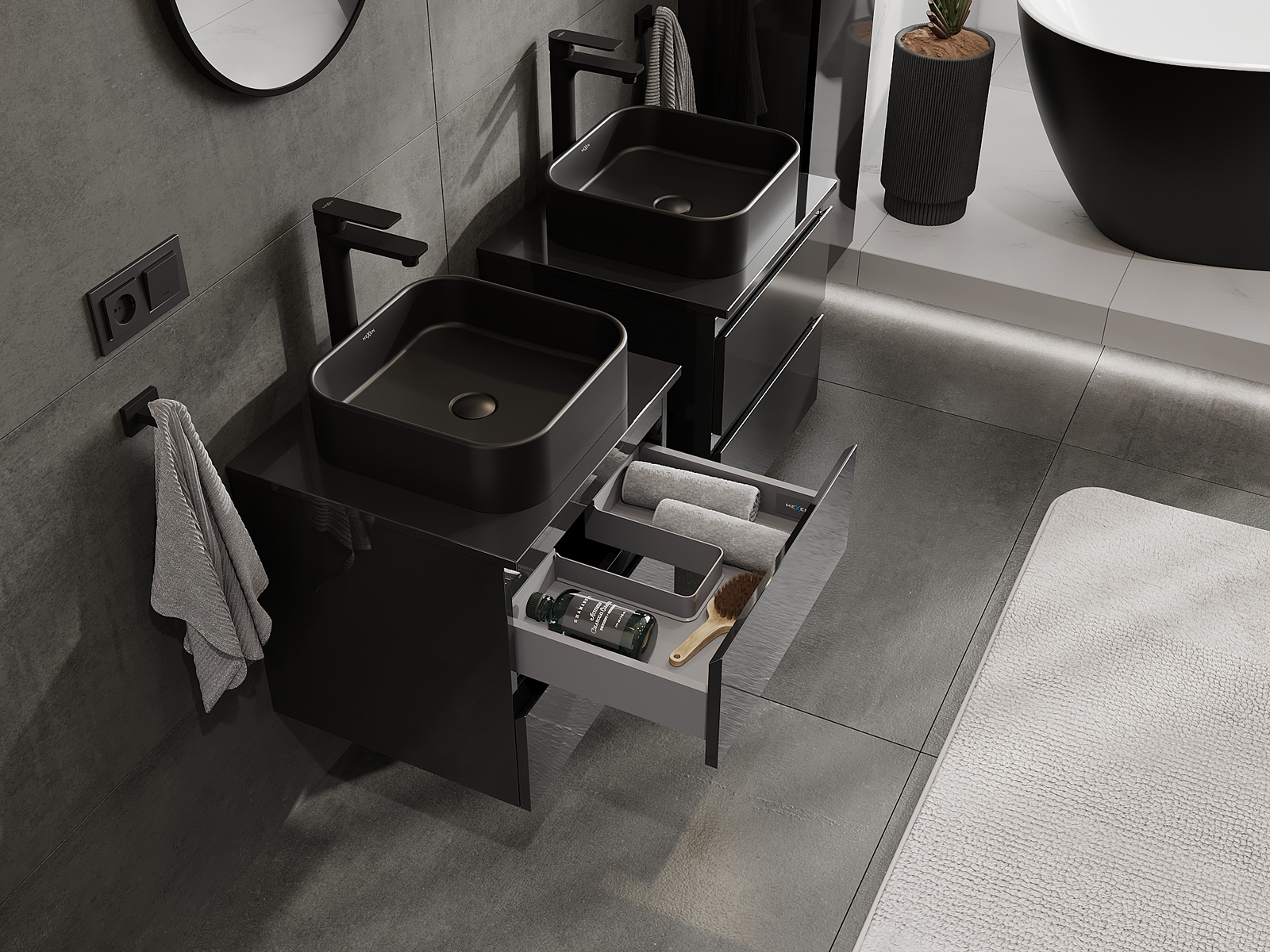 A moduláris fürdőszobabútorainkat különböző színkonfigurációkban lehet kombinálni, lehetővé téve a teljes személyre szabást. Kiválasztható mind az egyes elemek megjelenése, mind pedig funkciói, ami lehetővé teszi a bútorok személyes stílus- és használati preferenciákhoz való igazítását.