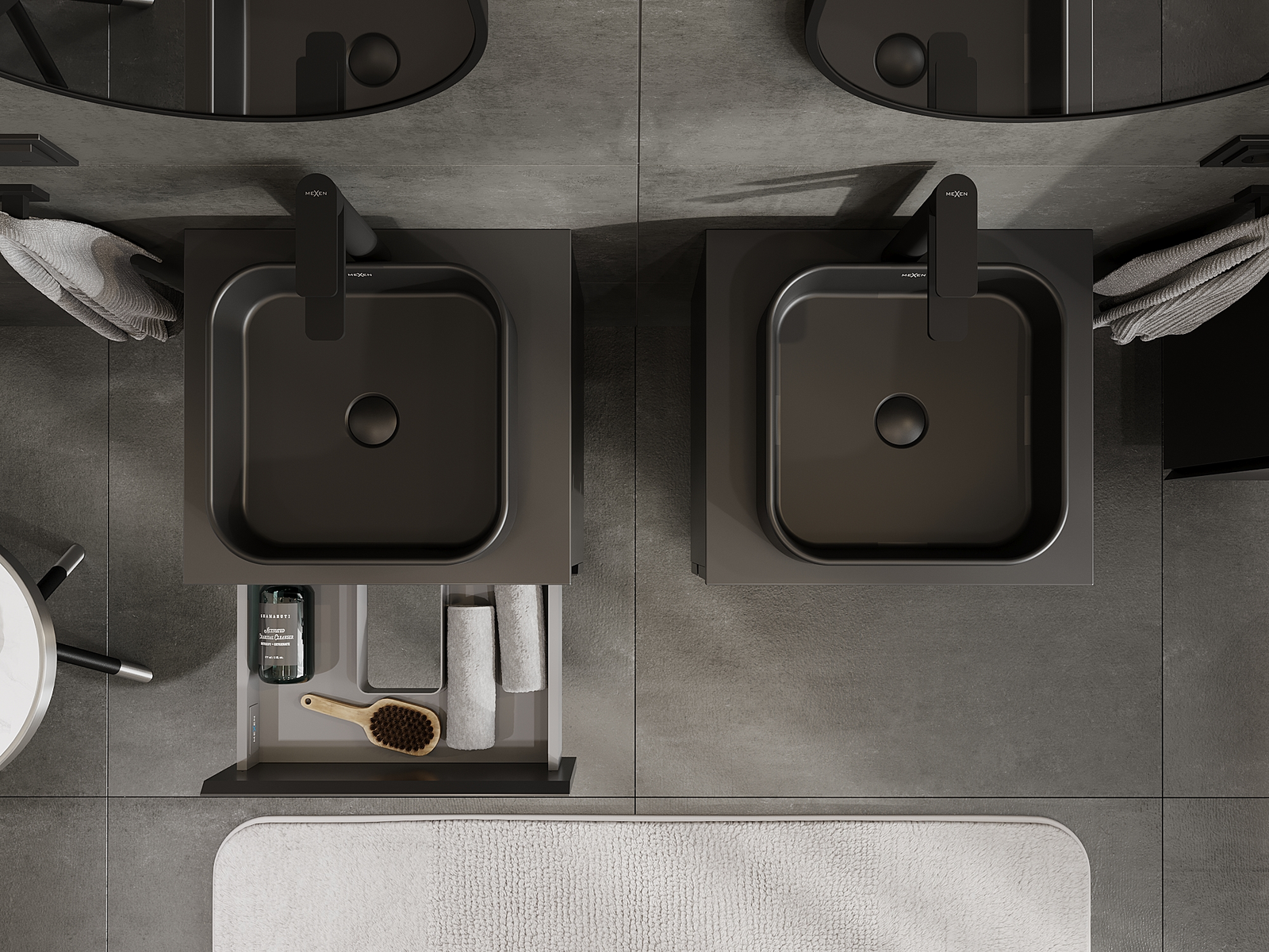 A moduláris fürdőszobabútorainkat különböző színkonfigurációkban lehet kombinálni, lehetővé téve a teljes személyre szabást. Kiválasztható mind az egyes elemek megjelenése, mind pedig funkciói, ami lehetővé teszi a bútorok személyes stílus- és használati preferenciákhoz való igazítását.