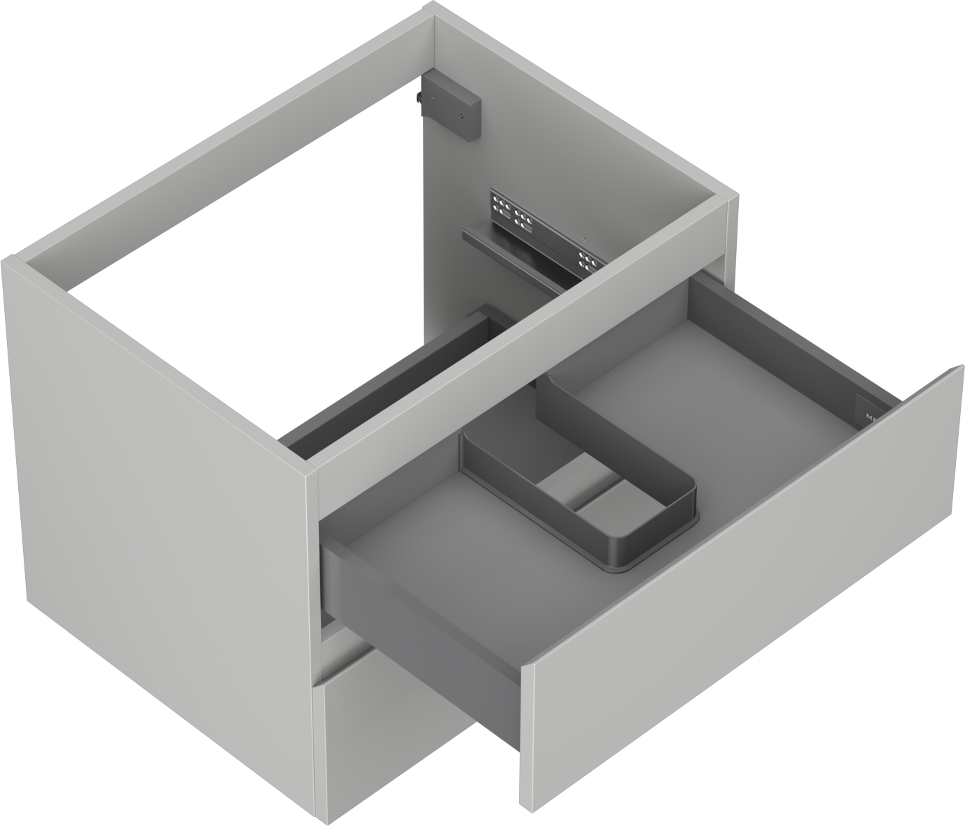 A fiókban lévő kivágás úgy van kialakítva, hogy befogadja a mosdó telepítéseknél szükséges szifont. Ennek köszönhetően a bútor teljesen funkcionálisan felszerelhető anélkül, hogy a fiók terének egy részét fel kellene áldozni a telepítés miatt.