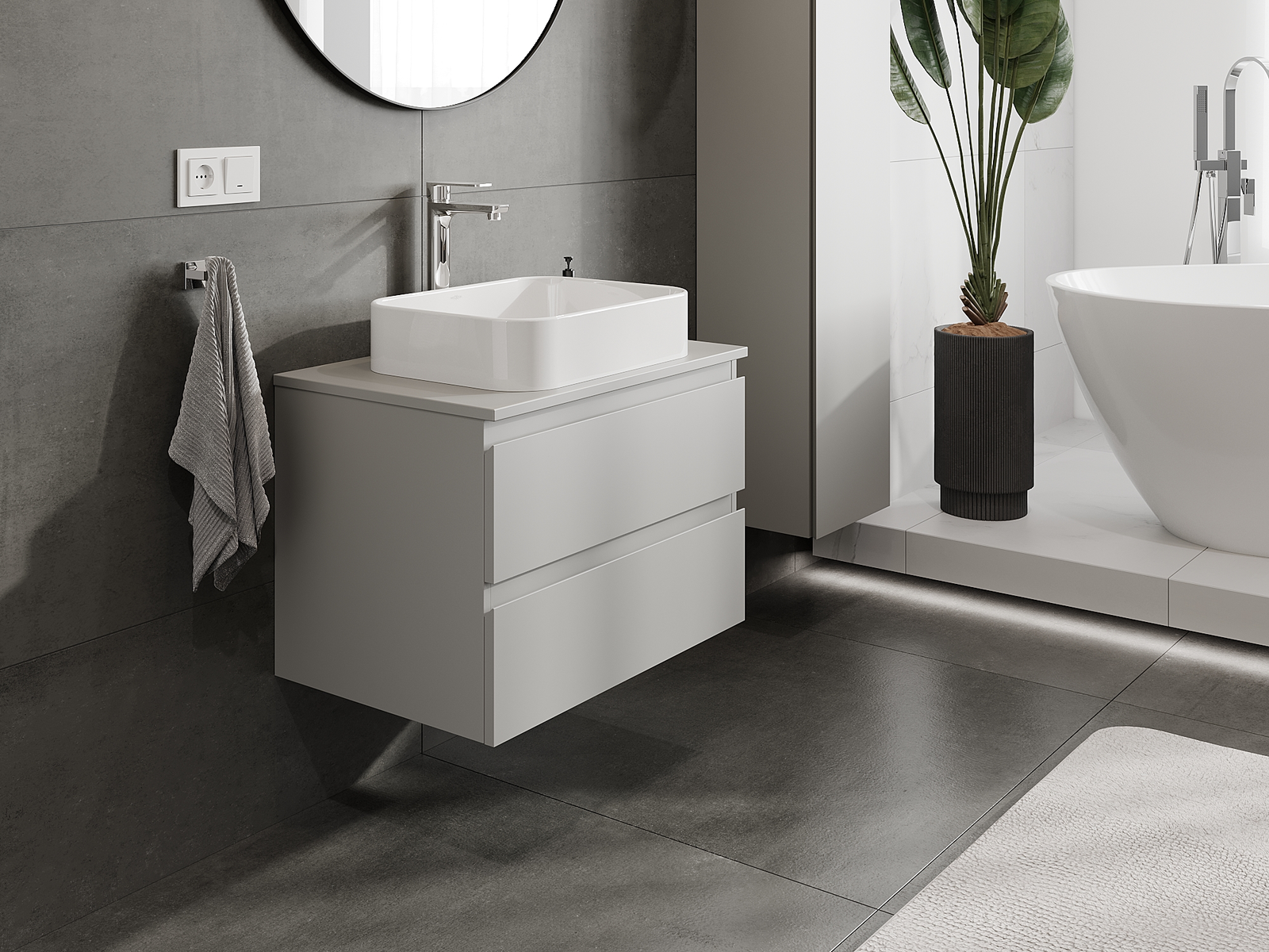 A moduláris fürdőszobabútorainkat különböző színkonfigurációkban lehet kombinálni, lehetővé téve a teljes személyre szabást. Kiválasztható mind az egyes elemek megjelenése, mind pedig funkciói, ami lehetővé teszi a bútorok személyes stílus- és használati preferenciákhoz való igazítását.