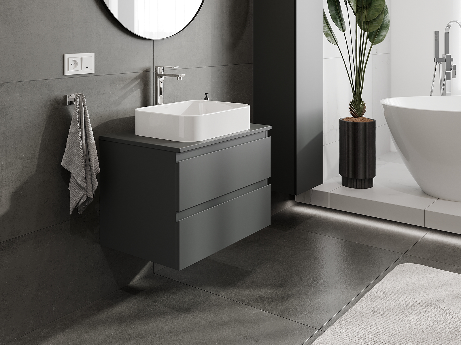 A moduláris fürdőszobabútorainkat különböző színkonfigurációkban lehet kombinálni, lehetővé téve a teljes személyre szabást. Kiválasztható mind az egyes elemek megjelenése, mind pedig funkciói, ami lehetővé teszi a bútorok személyes stílus- és használati preferenciákhoz való igazítását.