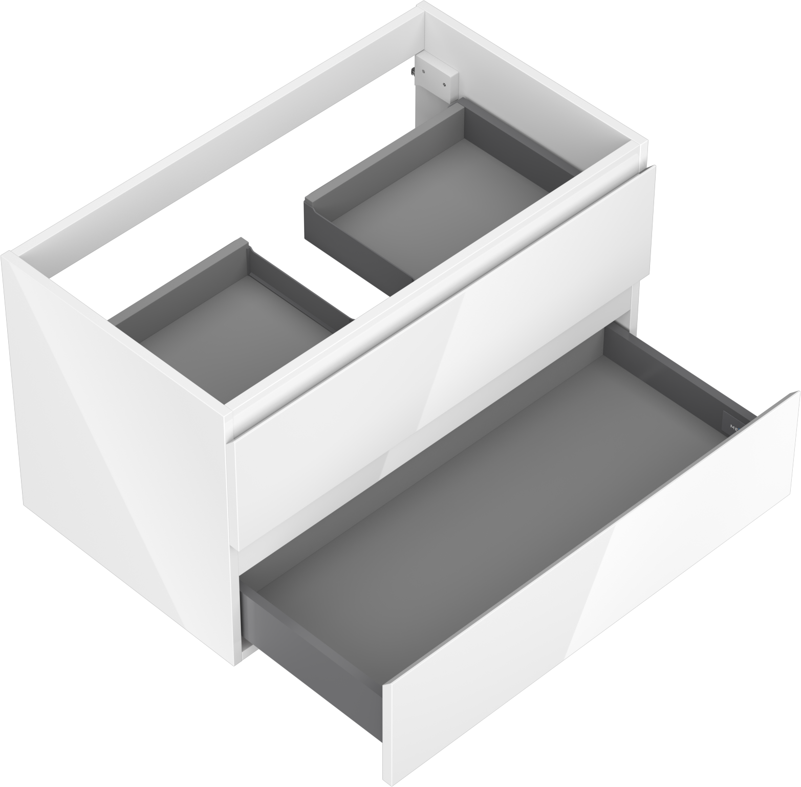 A fiókban lévő kivágás úgy van kialakítva, hogy befogadja a mosdó telepítéseknél szükséges szifont. Ennek köszönhetően a bútor teljesen funkcionálisan felszerelhető anélkül, hogy a fiók terének egy részét fel kellene áldozni a telepítés miatt.