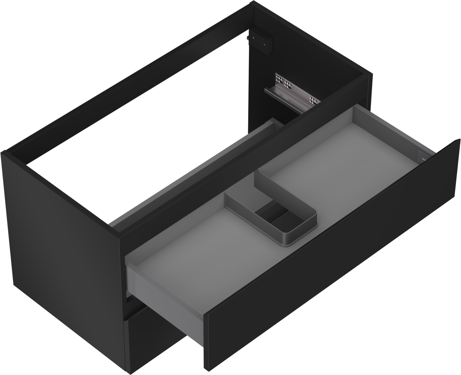 A fiókban lévő kivágás úgy van kialakítva, hogy befogadja a mosdó telepítéseknél szükséges szifont. Ennek köszönhetően a bútor teljesen funkcionálisan felszerelhető anélkül, hogy a fiók terének egy részét fel kellene áldozni a telepítés miatt.