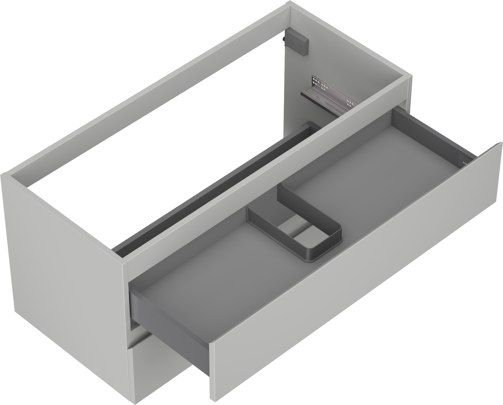 A fiókban lévő kivágás úgy van kialakítva, hogy befogadja a mosdó telepítéseknél szükséges szifont. Ennek köszönhetően a bútor teljesen funkcionálisan felszerelhető anélkül, hogy a fiók terének egy részét fel kellene áldozni a telepítés miatt.