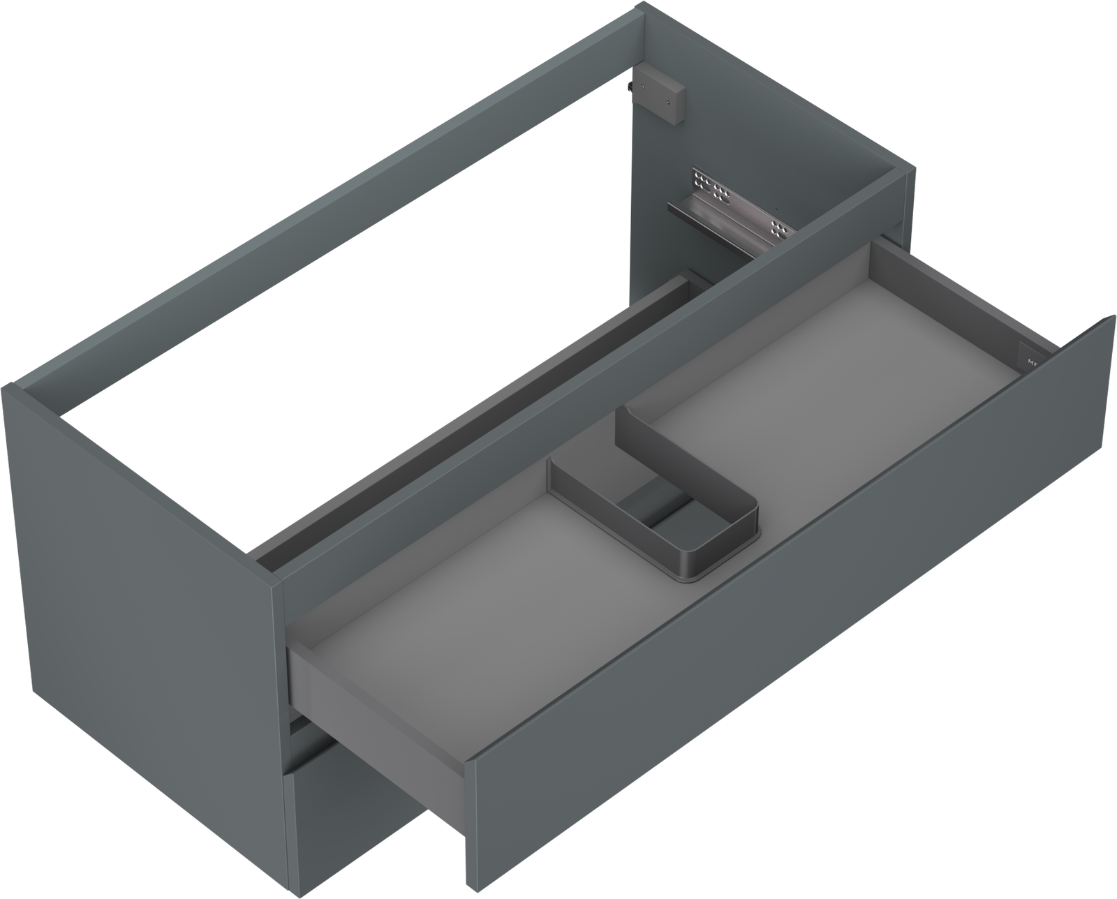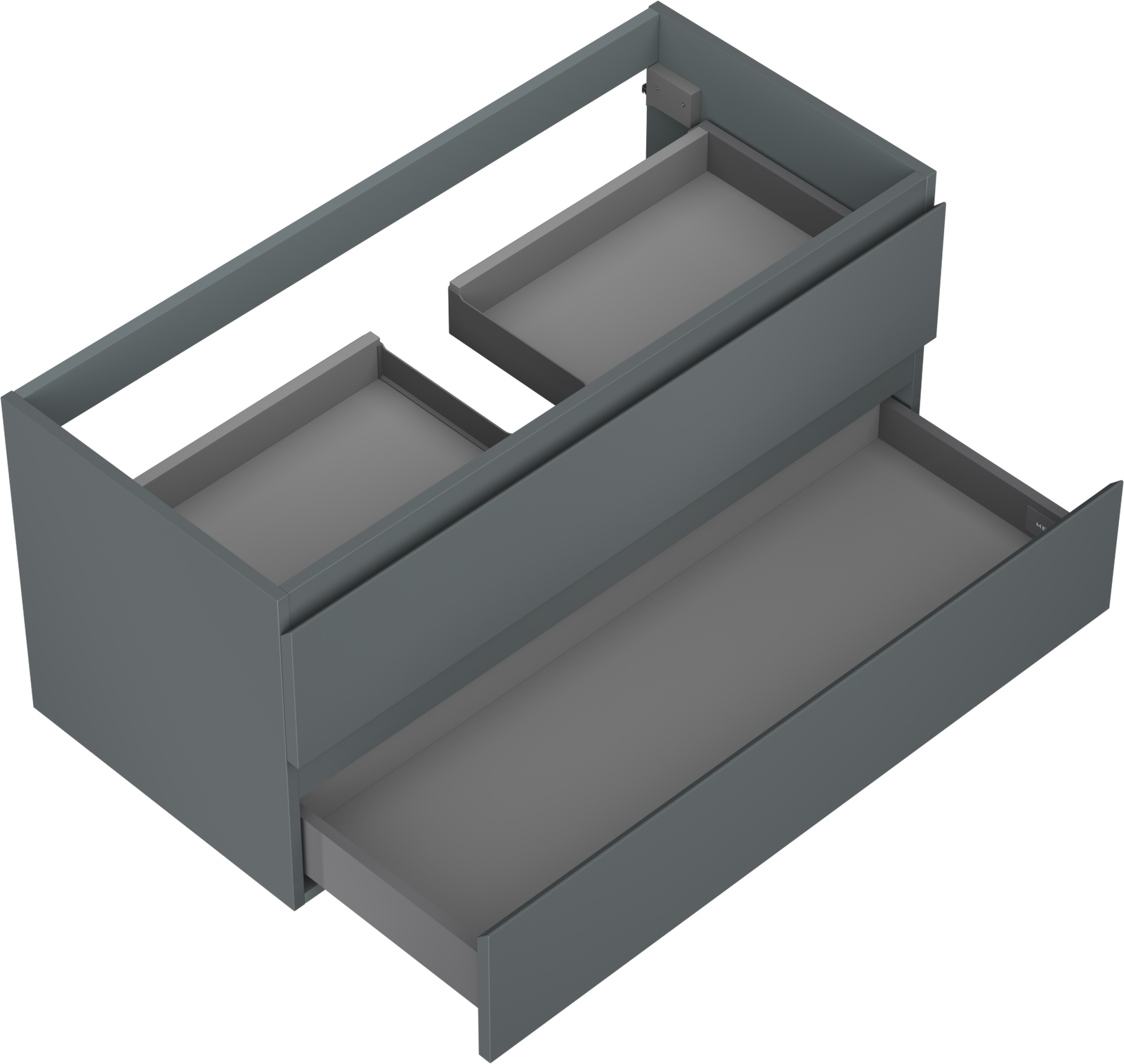 A fiókban lévő kivágás úgy van kialakítva, hogy befogadja a mosdó telepítéseknél szükséges szifont. Ennek köszönhetően a bútor teljesen funkcionálisan felszerelhető anélkül, hogy a fiók terének egy részét fel kellene áldozni a telepítés miatt.