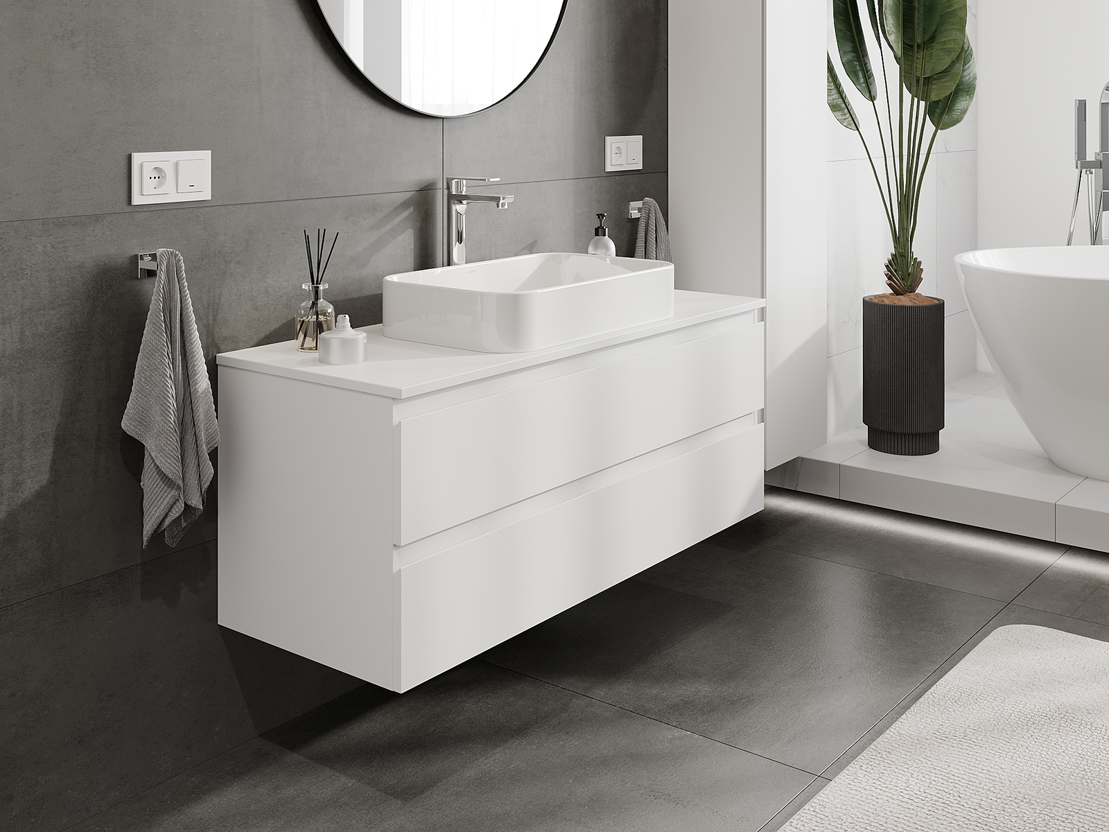 A moduláris fürdőszobabútorainkat különböző színkonfigurációkban lehet kombinálni, lehetővé téve a teljes személyre szabást. Kiválasztható mind az egyes elemek megjelenése, mind pedig funkciói, ami lehetővé teszi a bútorok személyes stílus- és használati preferenciákhoz való igazítását.