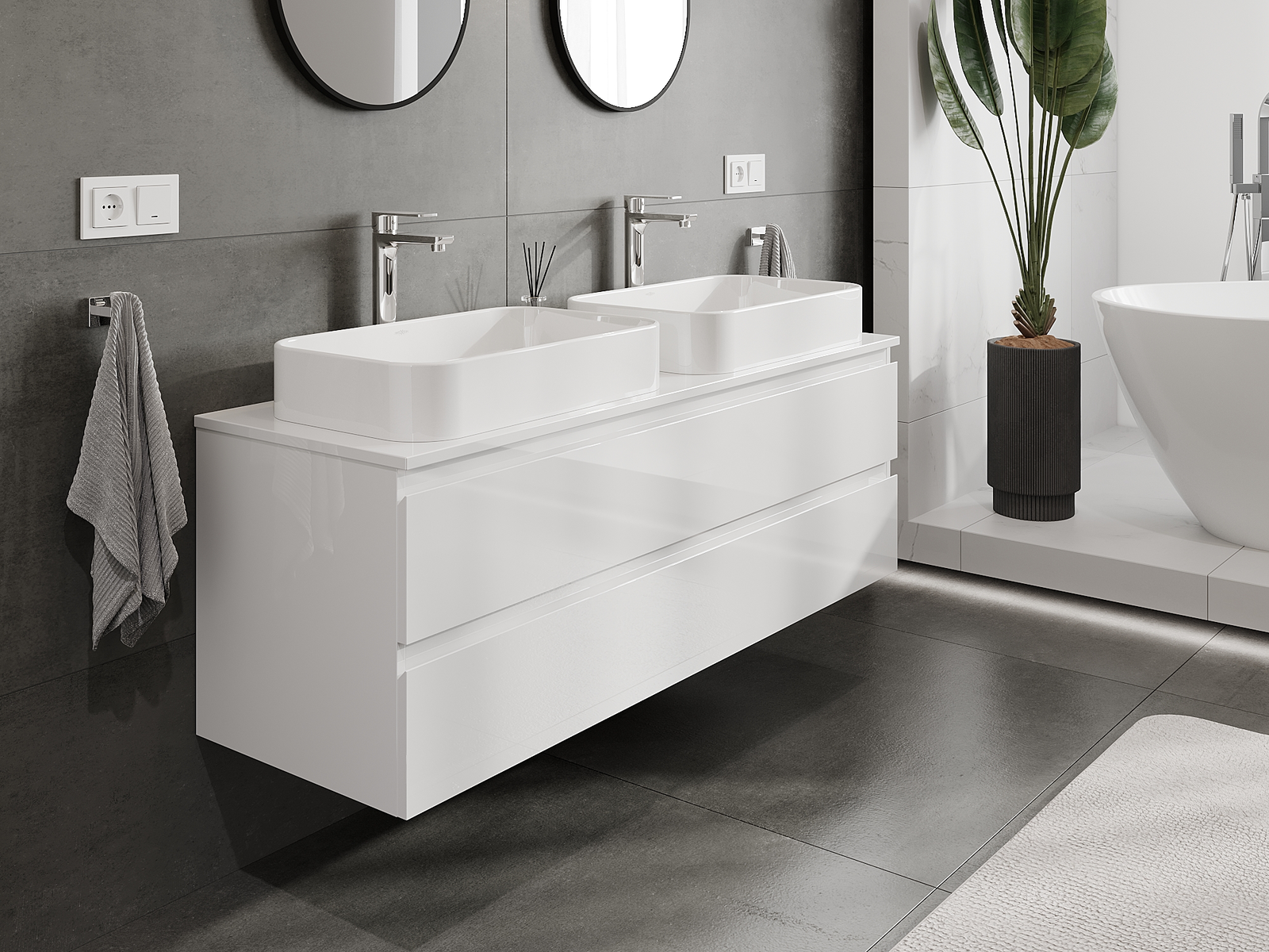 A moduláris fürdőszobabútorainkat különböző színkonfigurációkban lehet kombinálni, lehetővé téve a teljes személyre szabást. Kiválasztható mind az egyes elemek megjelenése, mind pedig funkciói, ami lehetővé teszi a bútorok személyes stílus- és használati preferenciákhoz való igazítását.