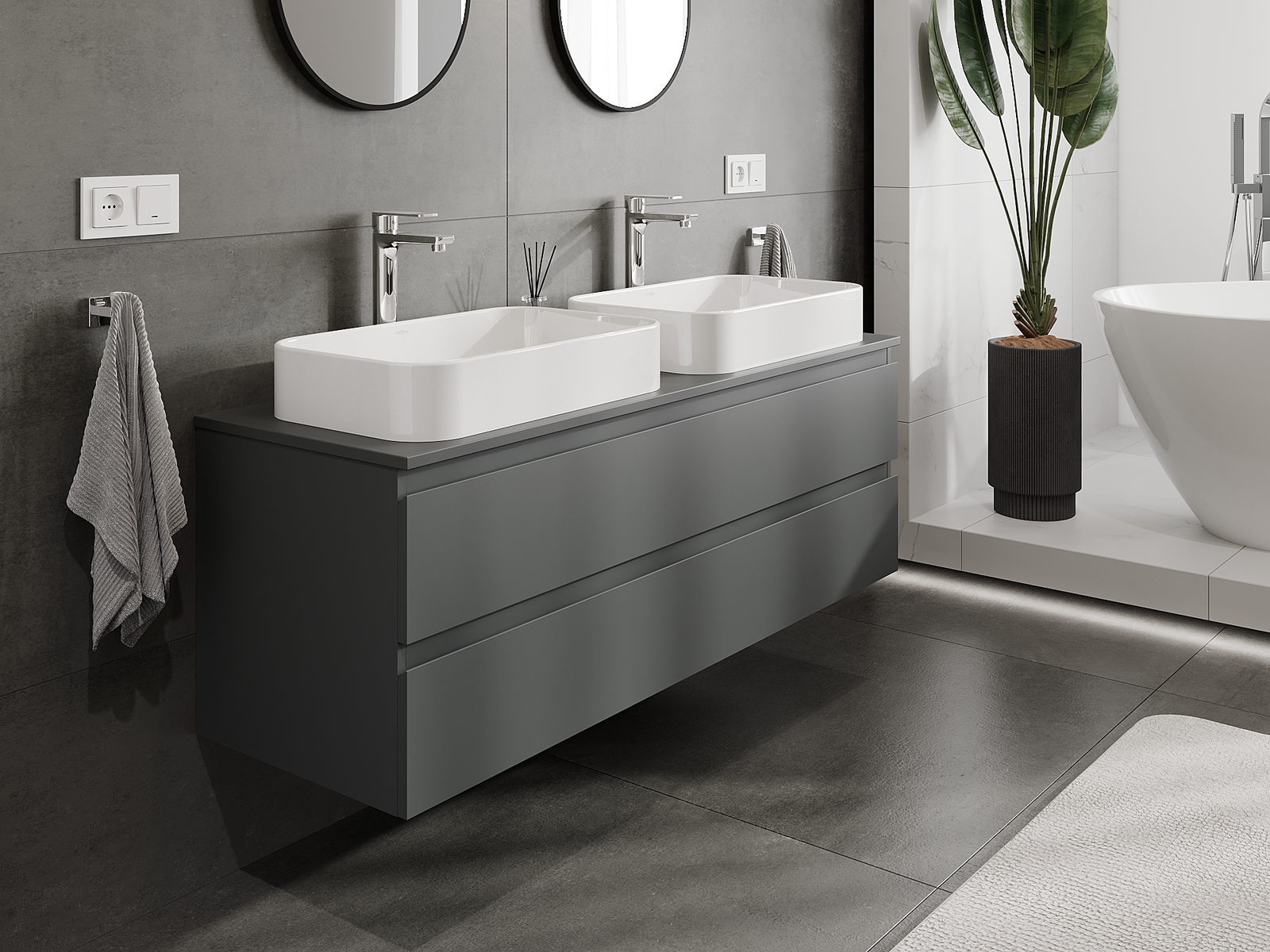 A moduláris fürdőszobabútorainkat különböző színkonfigurációkban lehet kombinálni, lehetővé téve a teljes személyre szabást. Kiválasztható mind az egyes elemek megjelenése, mind pedig funkciói, ami lehetővé teszi a bútorok személyes stílus- és használati preferenciákhoz való igazítását.