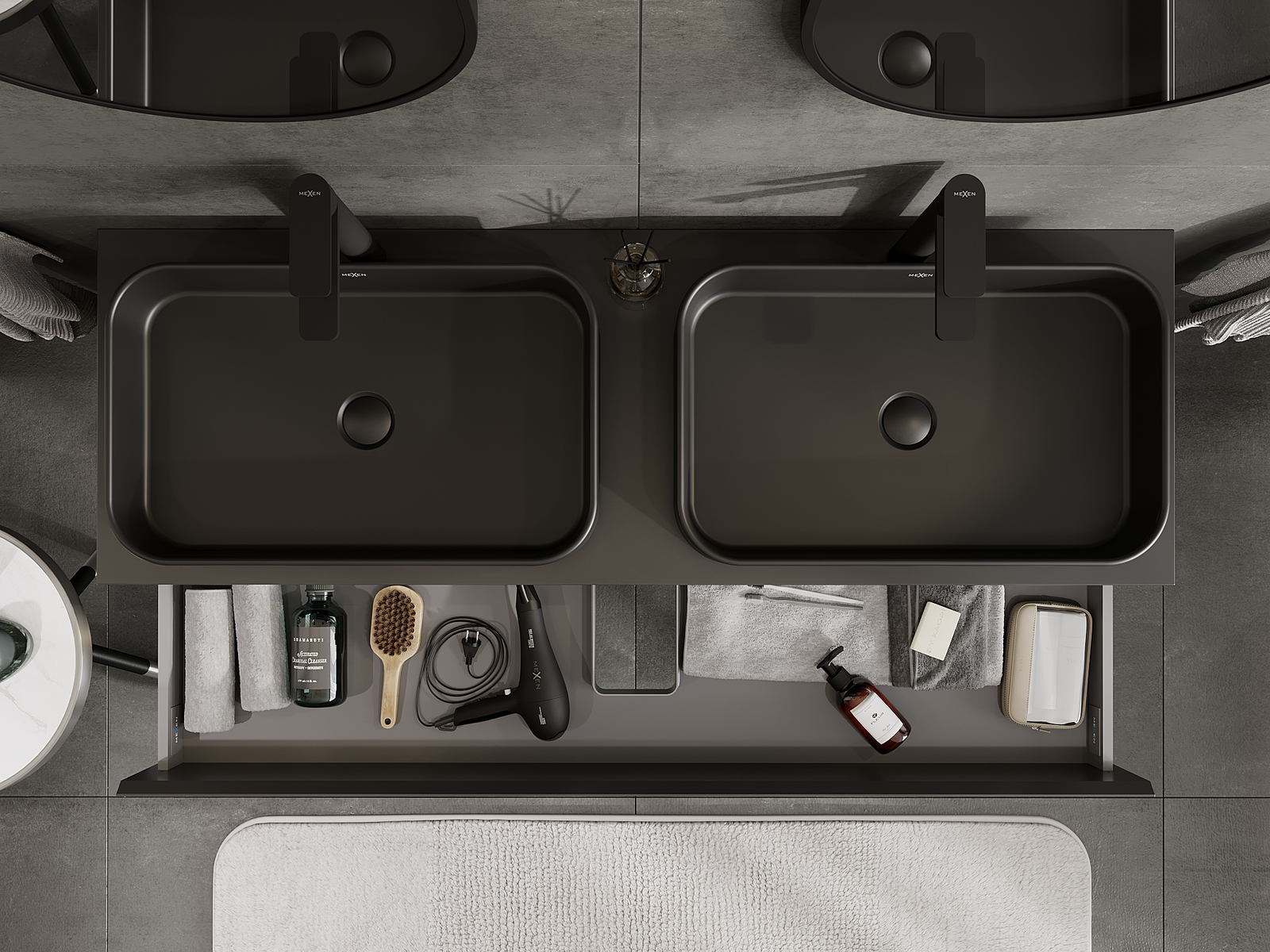 A fiókban lévő kivágás úgy van kialakítva, hogy befogadja a mosdó telepítéseknél szükséges szifont. Ennek köszönhetően a bútor teljesen funkcionálisan felszerelhető anélkül, hogy a fiók terének egy részét fel kellene áldozni a telepítés miatt.
