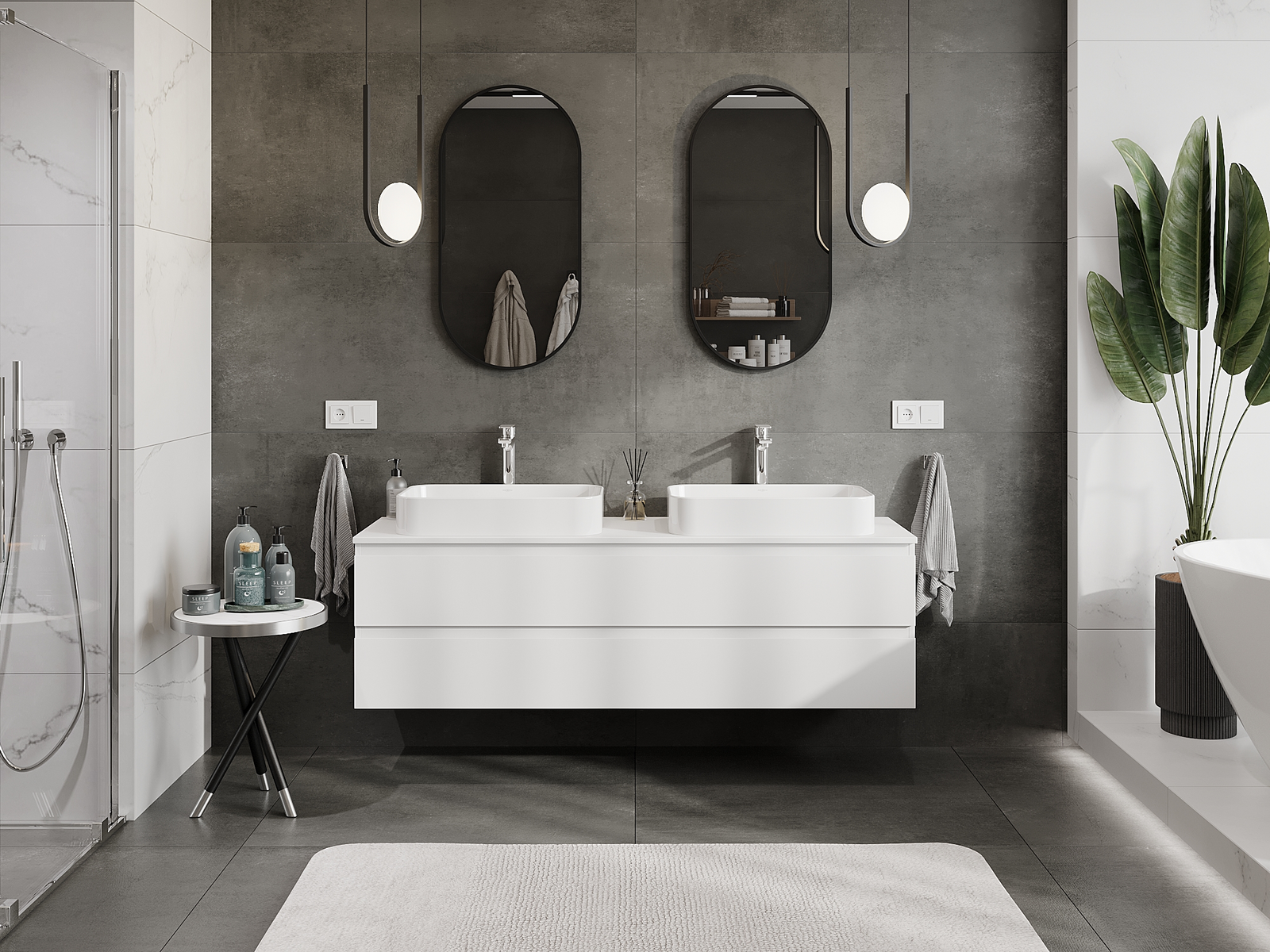A moduláris fürdőszobabútorainkat különböző színkonfigurációkban lehet kombinálni, lehetővé téve a teljes személyre szabást. Kiválasztható mind az egyes elemek megjelenése, mind pedig funkciói, ami lehetővé teszi a bútorok személyes stílus- és használati preferenciákhoz való igazítását.