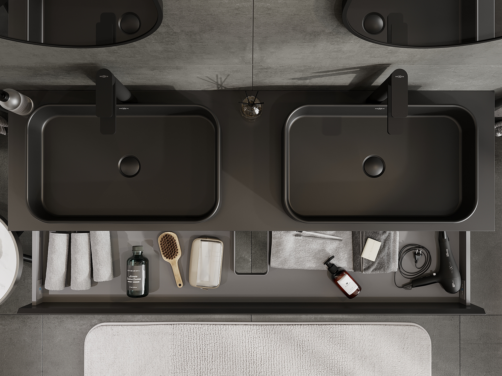 A fiókban lévő kivágás úgy van kialakítva, hogy befogadja a mosdó telepítéseknél szükséges szifont. Ennek köszönhetően a bútor teljesen funkcionálisan felszerelhető anélkül, hogy a fiók terének egy részét fel kellene áldozni a telepítés miatt.