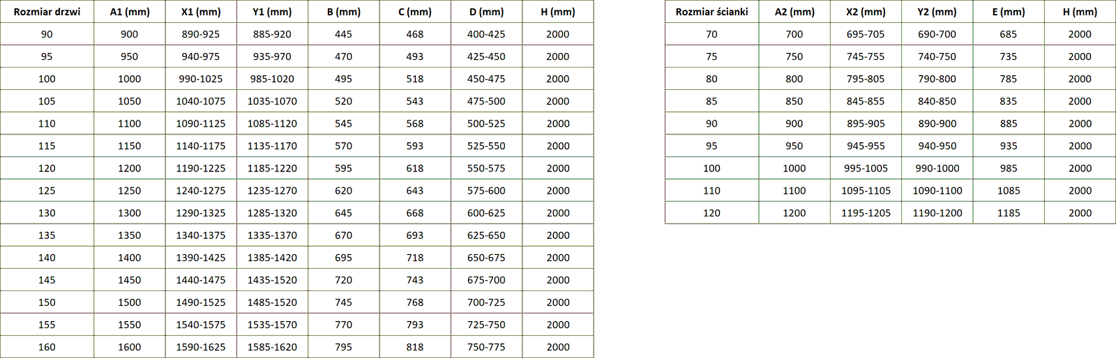 Méret: 95x70 cm (bal ajtó 95 cm, fal 70 cm)