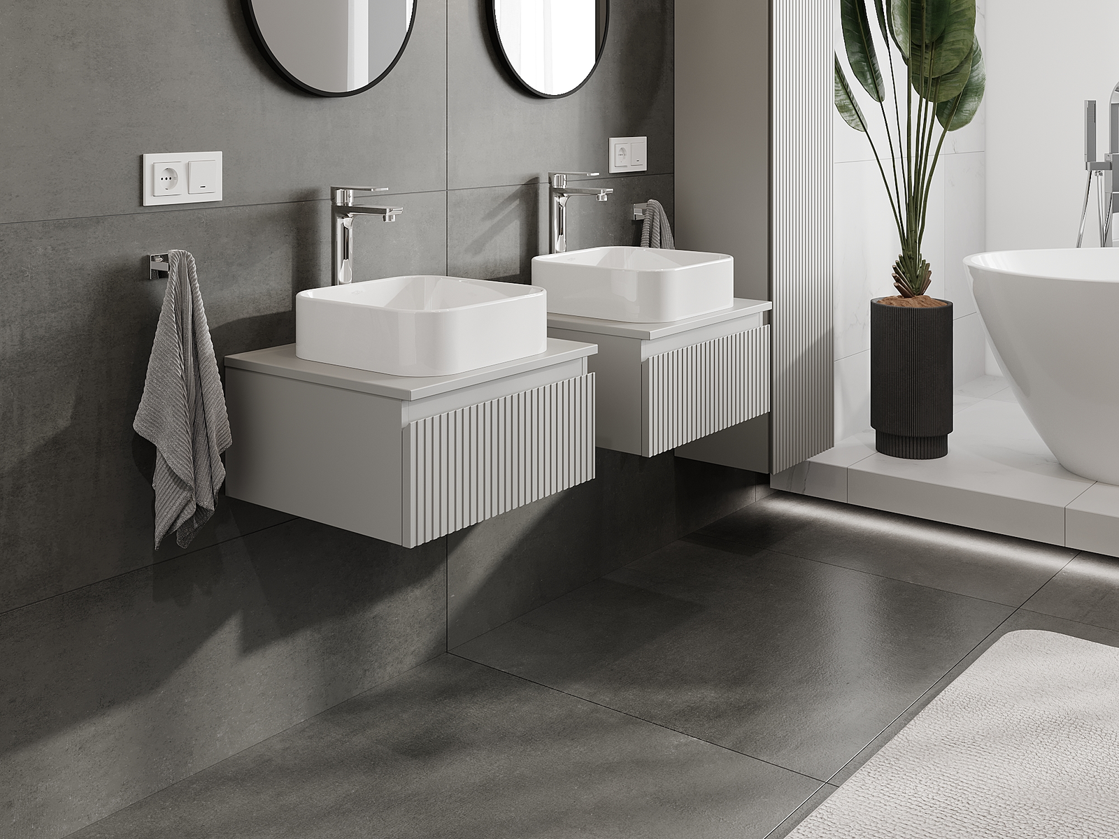 A moduláris fürdőszobabútorainkat különböző színkonfigurációkban lehet kombinálni, lehetővé téve a teljes személyre szabást. Kiválasztható mind az egyes elemek megjelenése, mind pedig funkciói, ami lehetővé teszi a bútorok személyes stílus- és használati preferenciákhoz való igazítását.