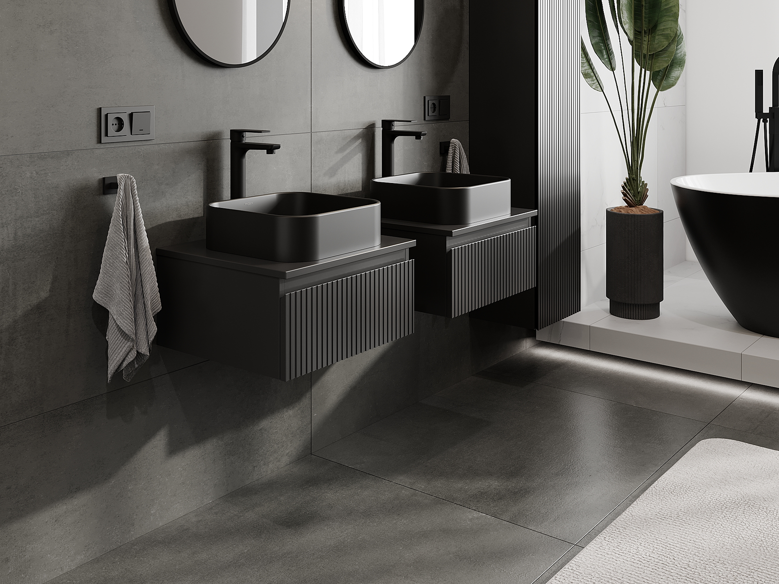 Mexen Rivel 50 cm-es fürdőszobai mosdószekrény, 1 fiók, bordázott, fekete matt - 91A20-05023-1-BF71