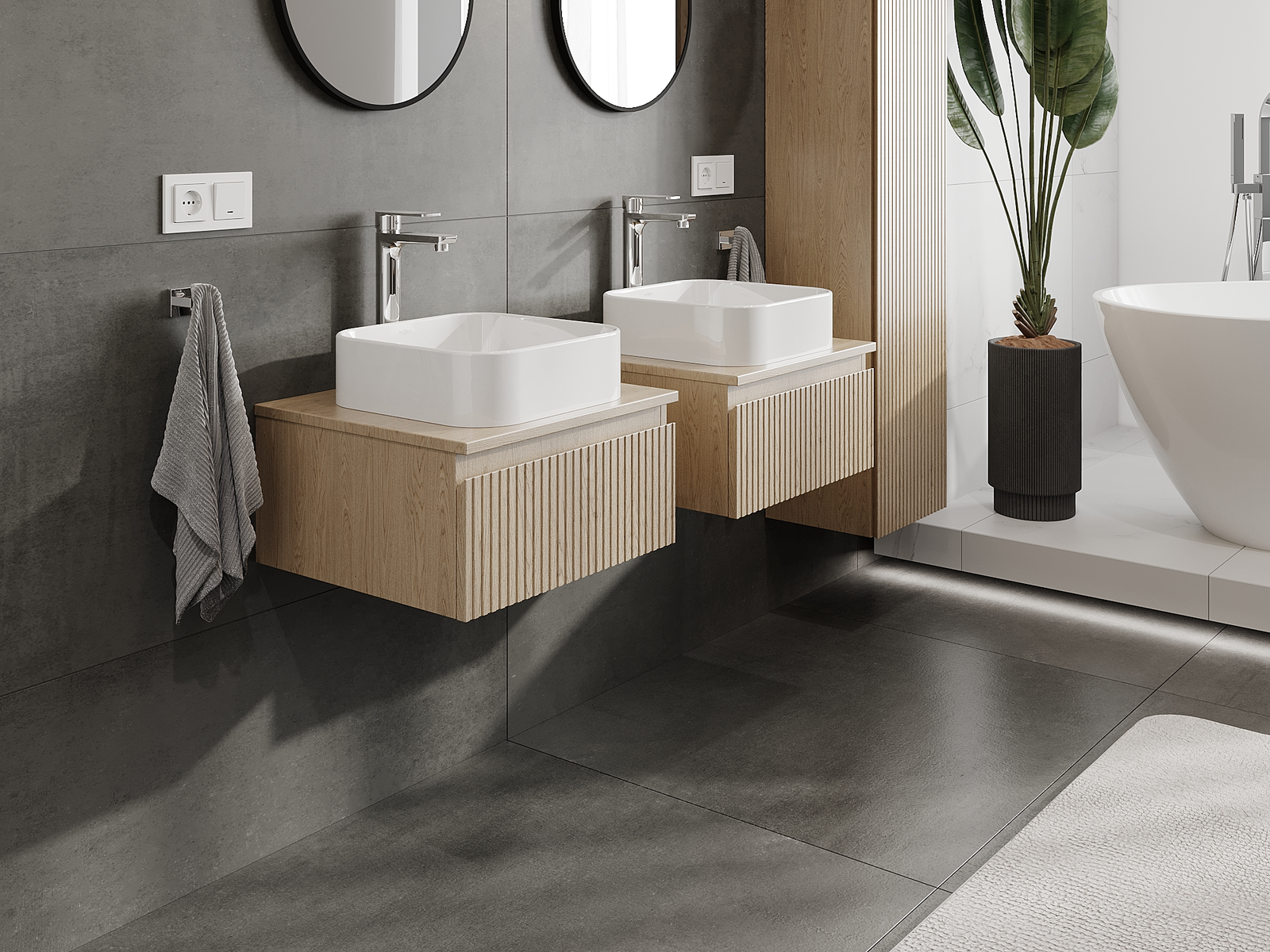 A moduláris fürdőszobabútorainkat különböző színkonfigurációkban lehet kombinálni, lehetővé téve a teljes személyre szabást. Kiválasztható mind az egyes elemek megjelenése, mind pedig funkciói, ami lehetővé teszi a bútorok személyes stílus- és használati preferenciákhoz való igazítását.