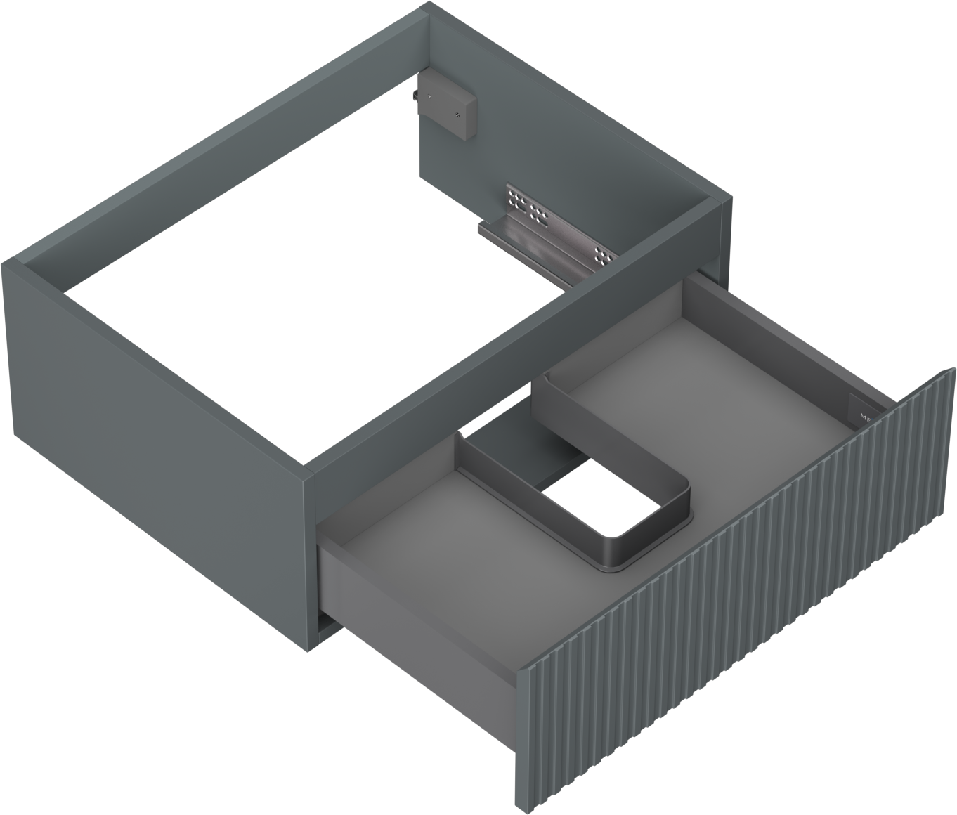 A fiókban lévő kivágás úgy van kialakítva, hogy befogadja a mosdó telepítéseknél szükséges szifont. Ennek köszönhetően a bútor teljesen funkcionálisan felszerelhető anélkül, hogy a fiók terének egy részét fel kellene áldozni a telepítés miatt.