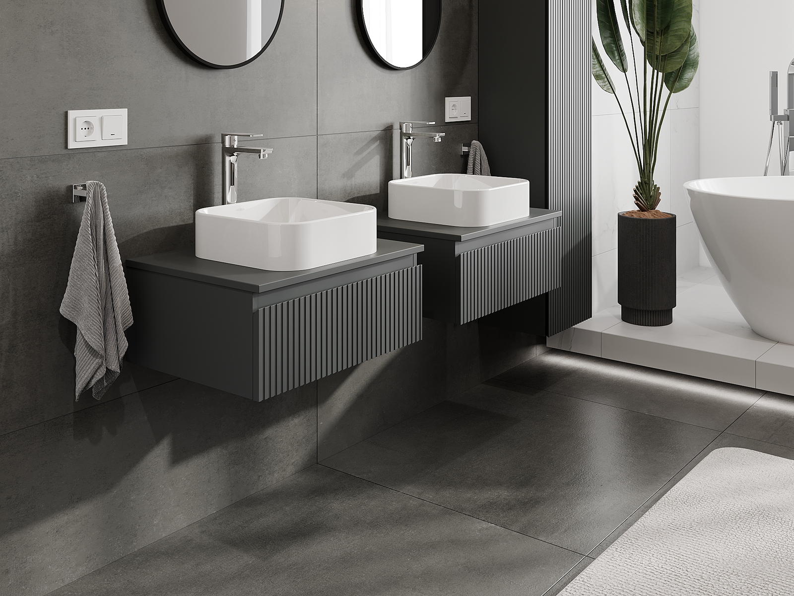 A moduláris fürdőszobabútorainkat különböző színkonfigurációkban lehet kombinálni, lehetővé téve a teljes személyre szabást. Kiválasztható mind az egyes elemek megjelenése, mind pedig funkciói, ami lehetővé teszi a bútorok személyes stílus- és használati preferenciákhoz való igazítását.
