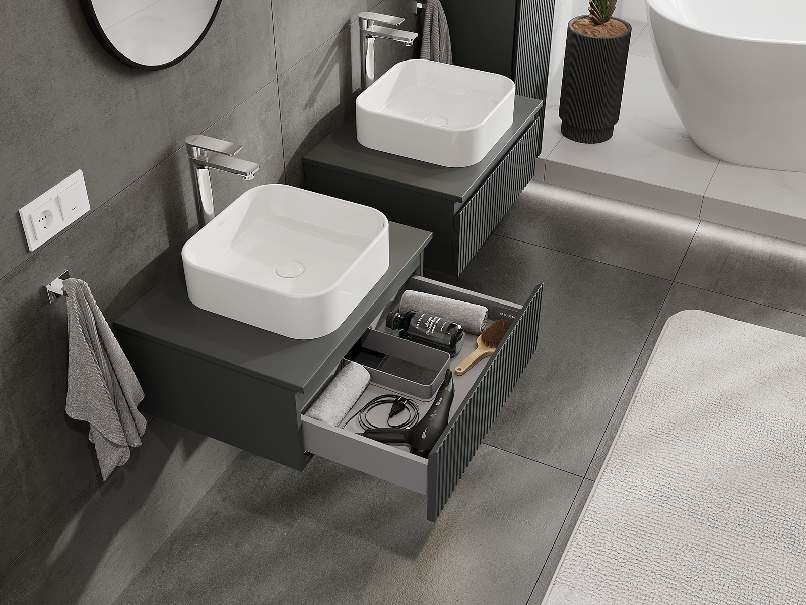 Mexen Rivel fürdőszobai szekrény 60 cm, 1 fiók, barázdált, grafit matt - 91A20-06023-1-BF66