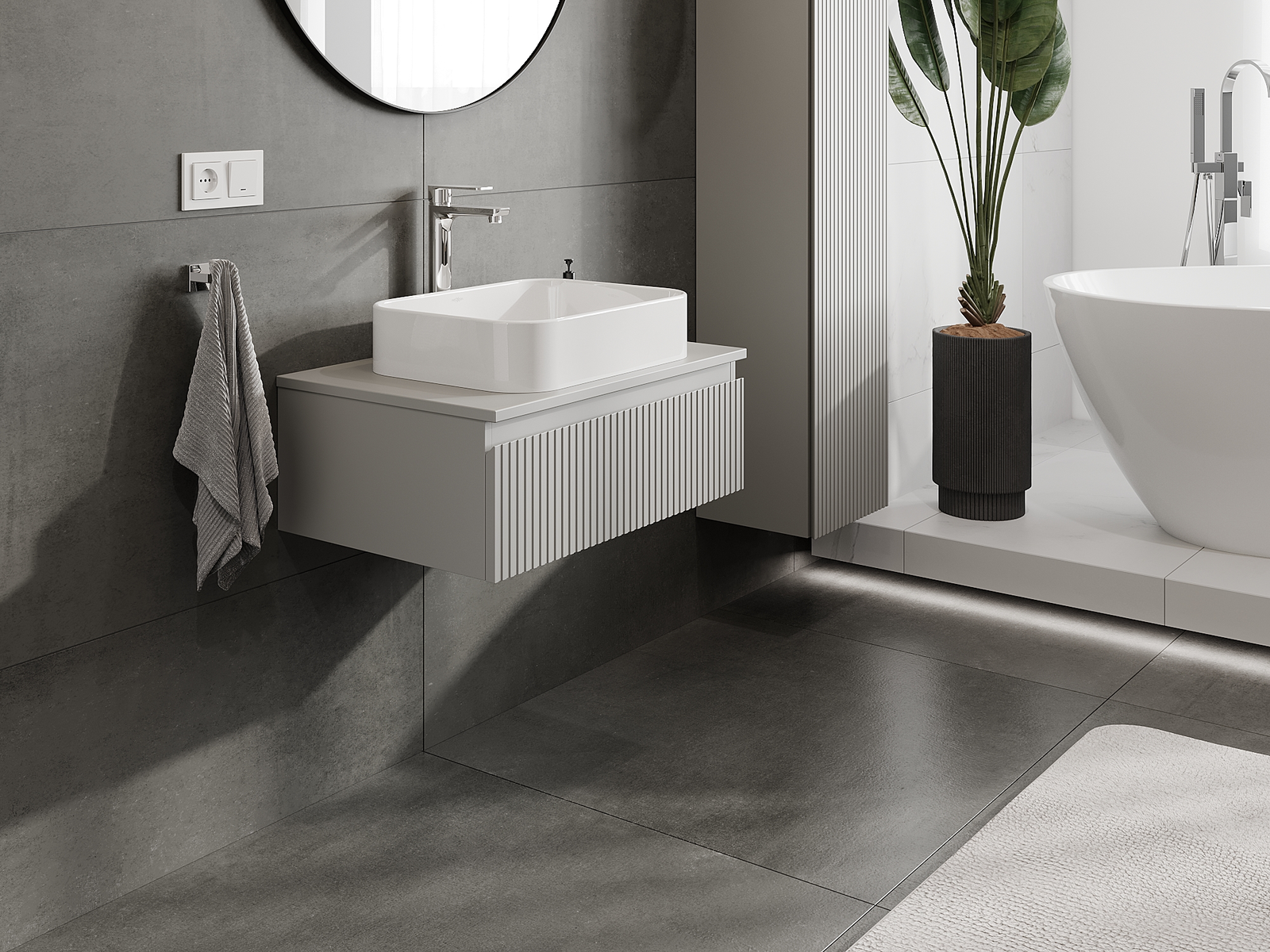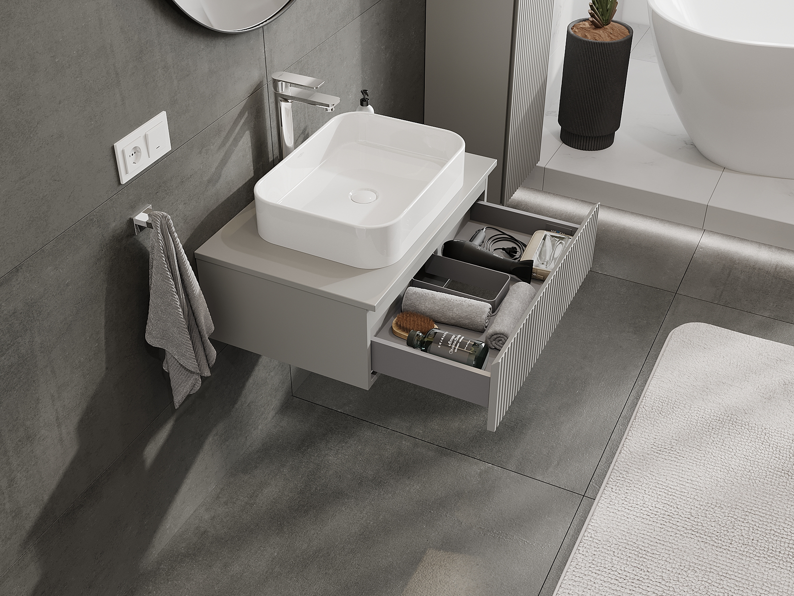 Mexen Rivel fürdőszobai mosdószekrény 70 cm, 1 fiók, bordázott, szürke matt - 91A20-07023-1-BF62