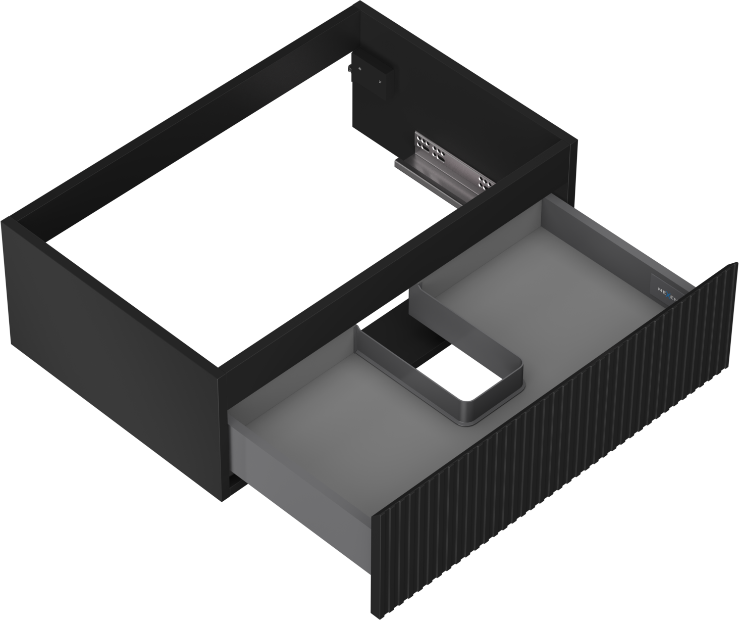 A fiókban lévő kivágás úgy van kialakítva, hogy befogadja a mosdó telepítéseknél szükséges szifont. Ennek köszönhetően a bútor teljesen funkcionálisan felszerelhető anélkül, hogy a fiók terének egy részét fel kellene áldozni a telepítés miatt.