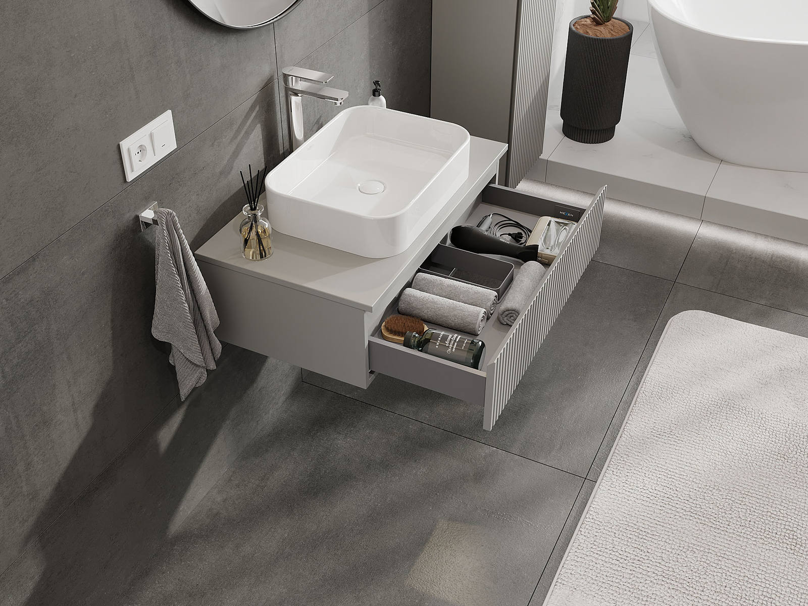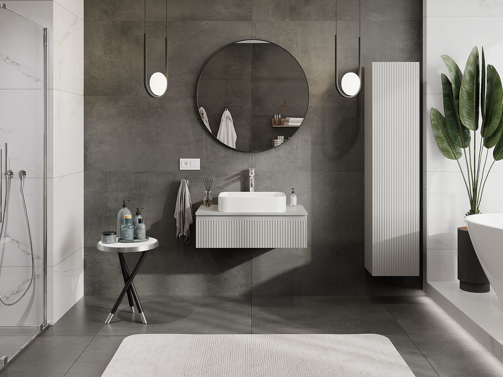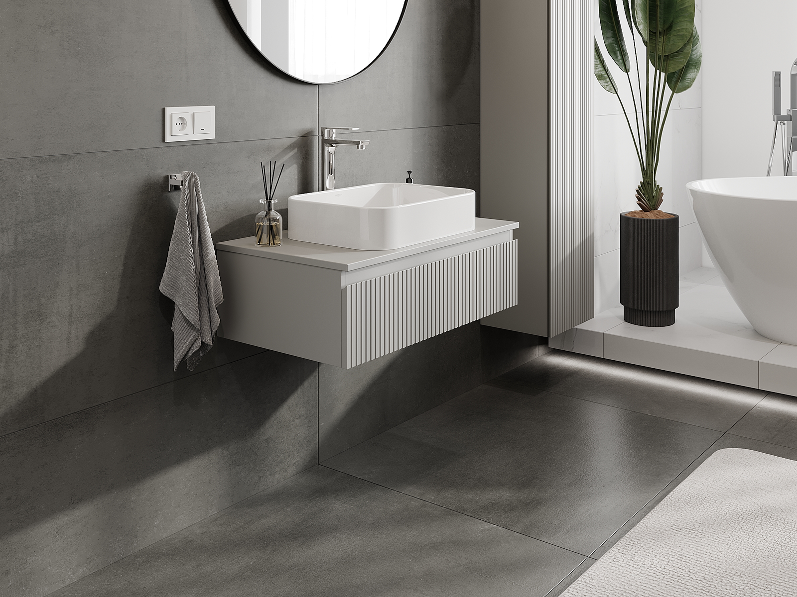 Mexen Rivel fürdőszobaszekrény mosdó alá 80 cm, 1 fiókos, bordázott, szürke matt - 91A20-08023-1-BF62
