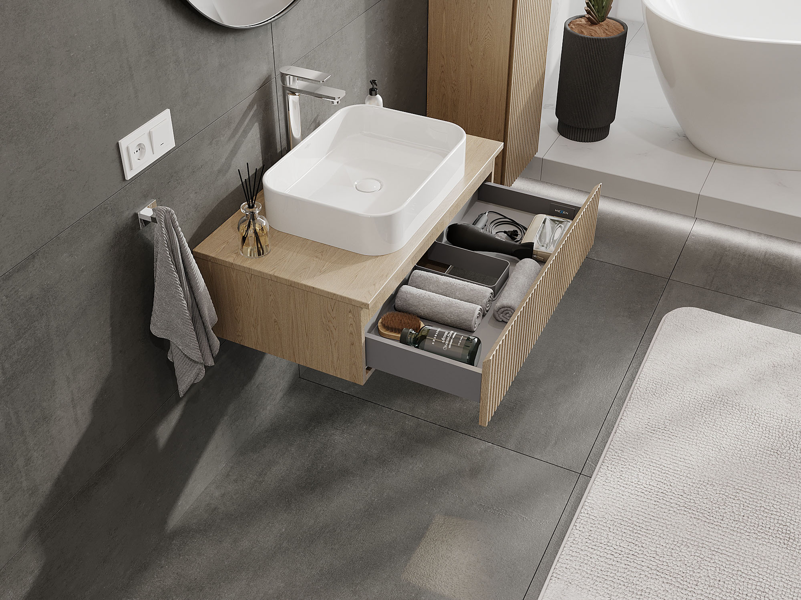 A szilárd anyagoknak, a precíz kivitelnek és a korszerű technológiai megoldásoknak köszönhetően a termék kényelmes használatot, nedvesség- és hőmérséklet-változásokkal szembeni ellenállást, valamint elegáns megjelenést biztosít, amely illeszkedik a különböző fürdőszobai stílusokhoz.