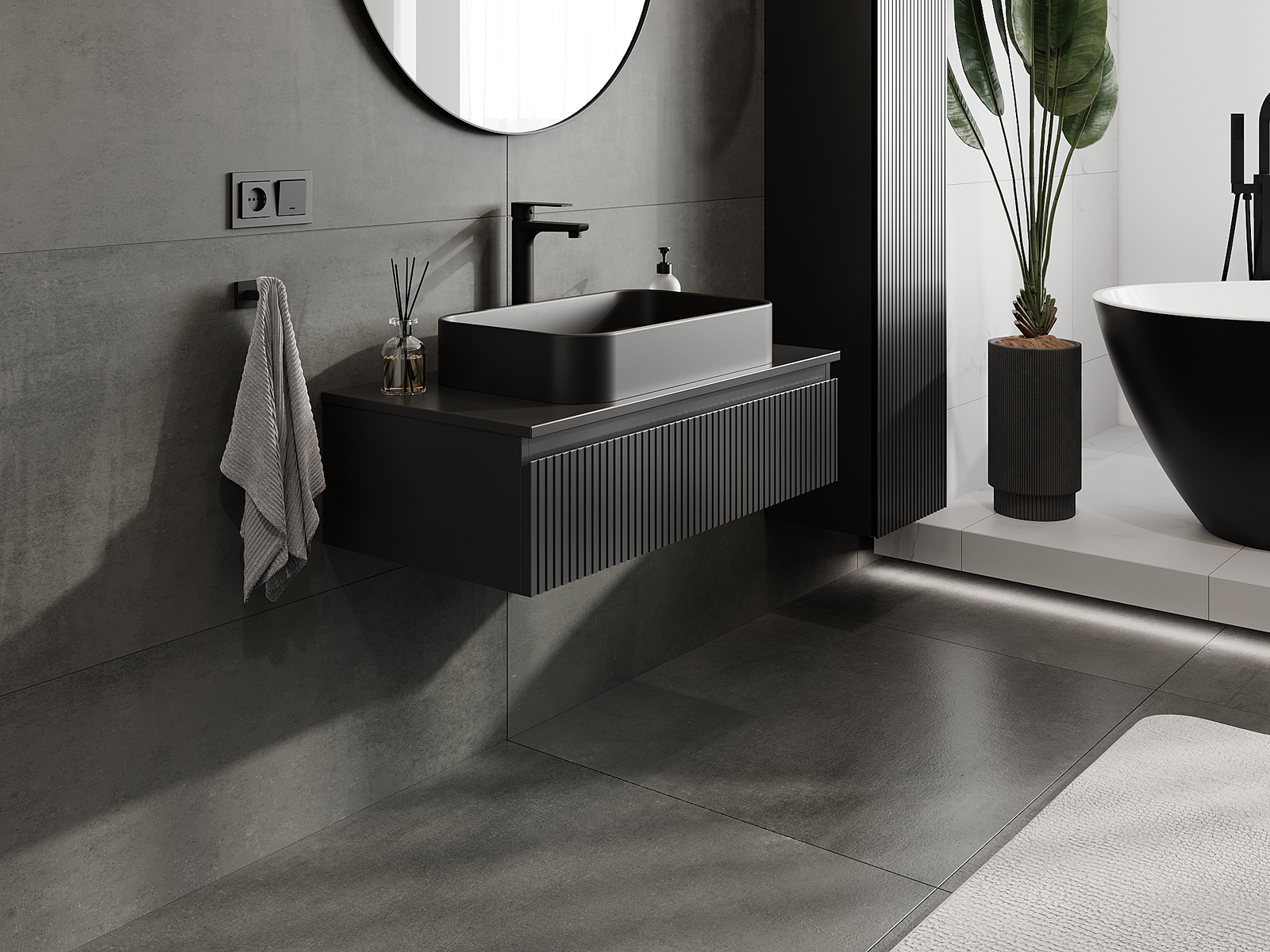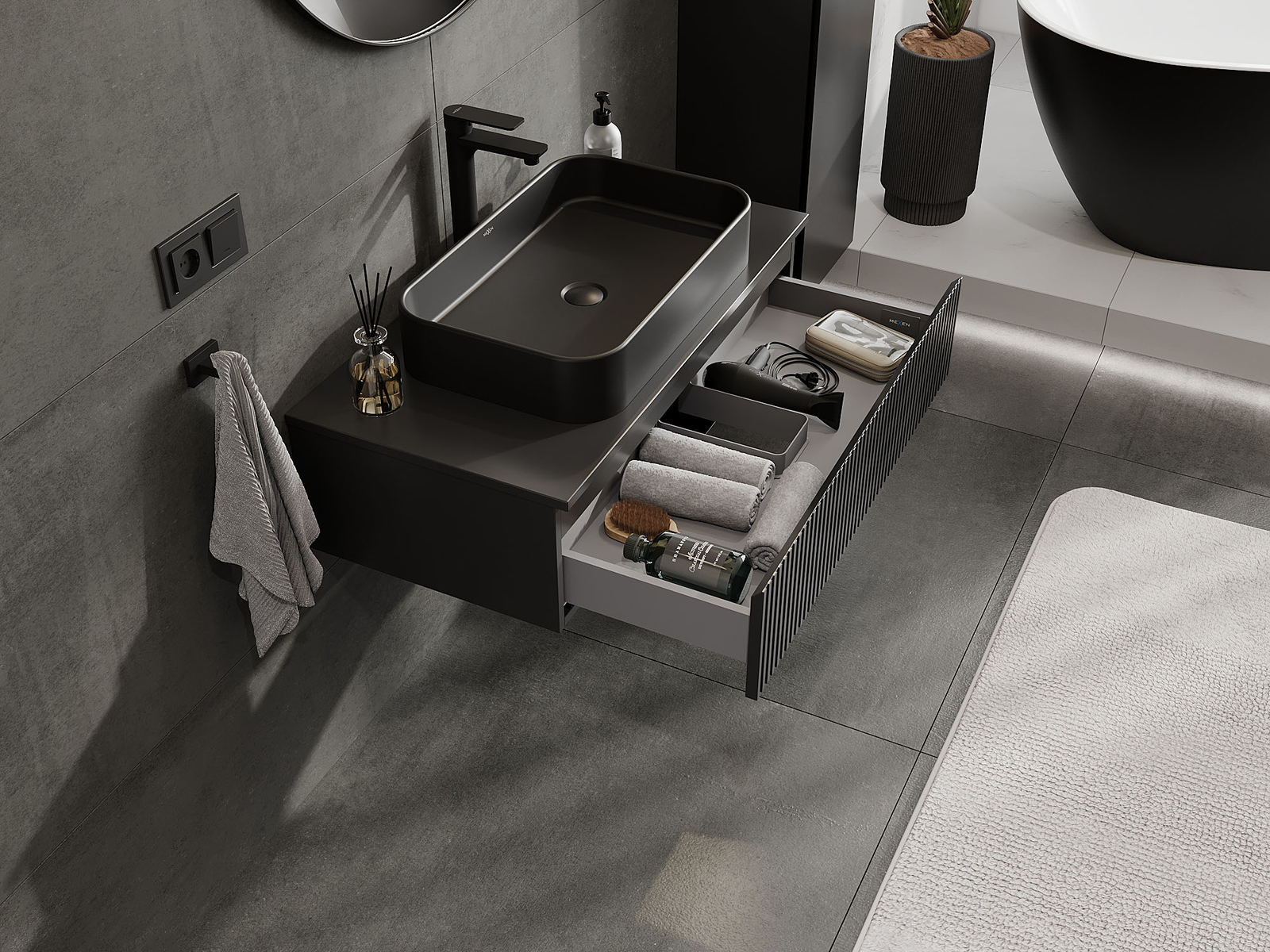 Mexen Rivel fürdőszobai mosdós szekrény 90 cm, 1 fiók, bordázott, fekete matt - 91A20-09023-1-BF71