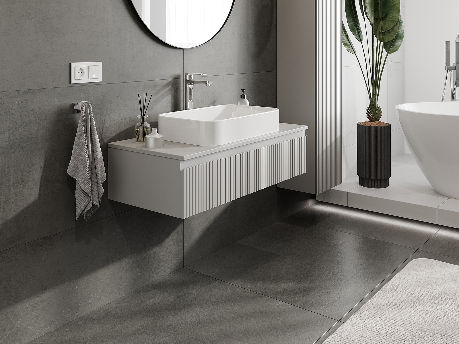 Mexen Rivel fürdőszobai mosdószekrény 100 cm, 1 fiók, bordázott, szürke matt - 91A20-10023-1-BF62