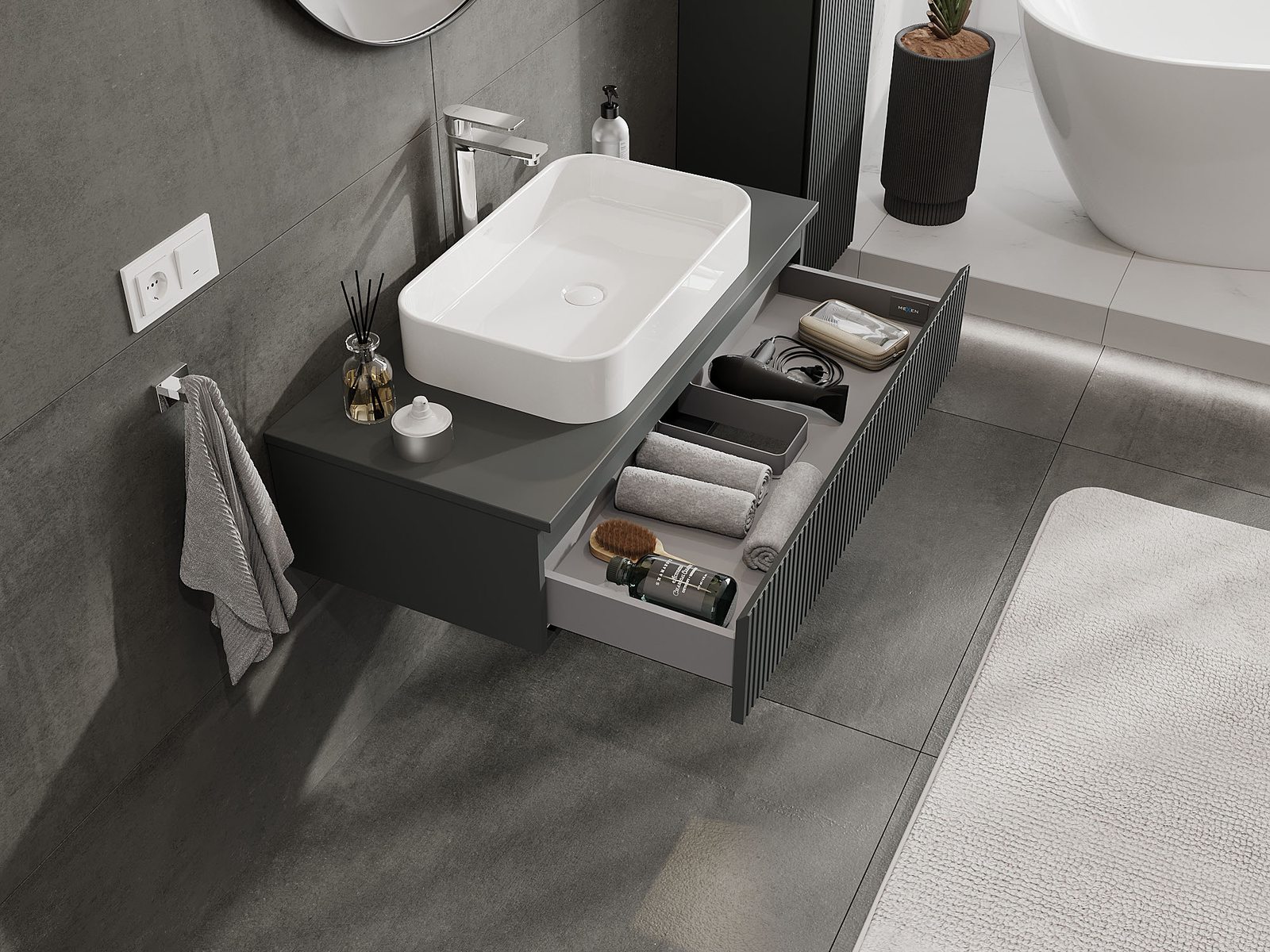 Mexen Rivel mosdószekrény 100 cm, 1 fiók, bordázott, matt grafit - 91A20-10023-1-BF66