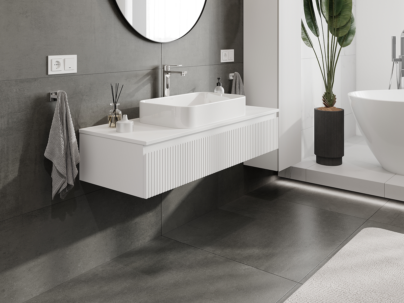A moduláris fürdőszobabútorainkat különböző színkonfigurációkban lehet kombinálni, lehetővé téve a teljes személyre szabást. Kiválasztható mind az egyes elemek megjelenése, mind pedig funkciói, ami lehetővé teszi a bútorok személyes stílus- és használati preferenciákhoz való igazítását.