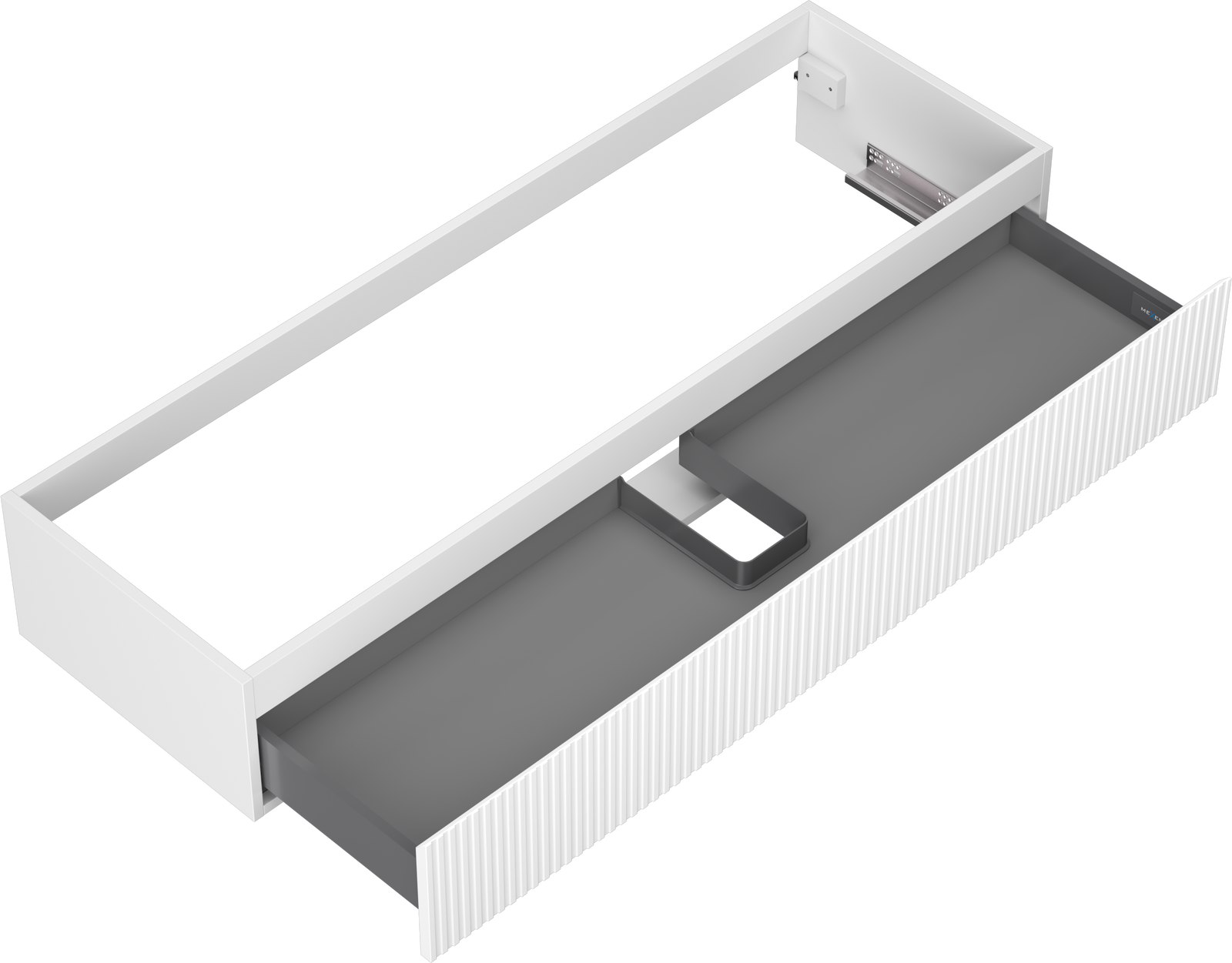 A fiókban lévő kivágás úgy van kialakítva, hogy befogadja a mosdó telepítéseknél szükséges szifont. Ennek köszönhetően a bútor teljesen funkcionálisan felszerelhető anélkül, hogy a fiók terének egy részét fel kellene áldozni a telepítés miatt.