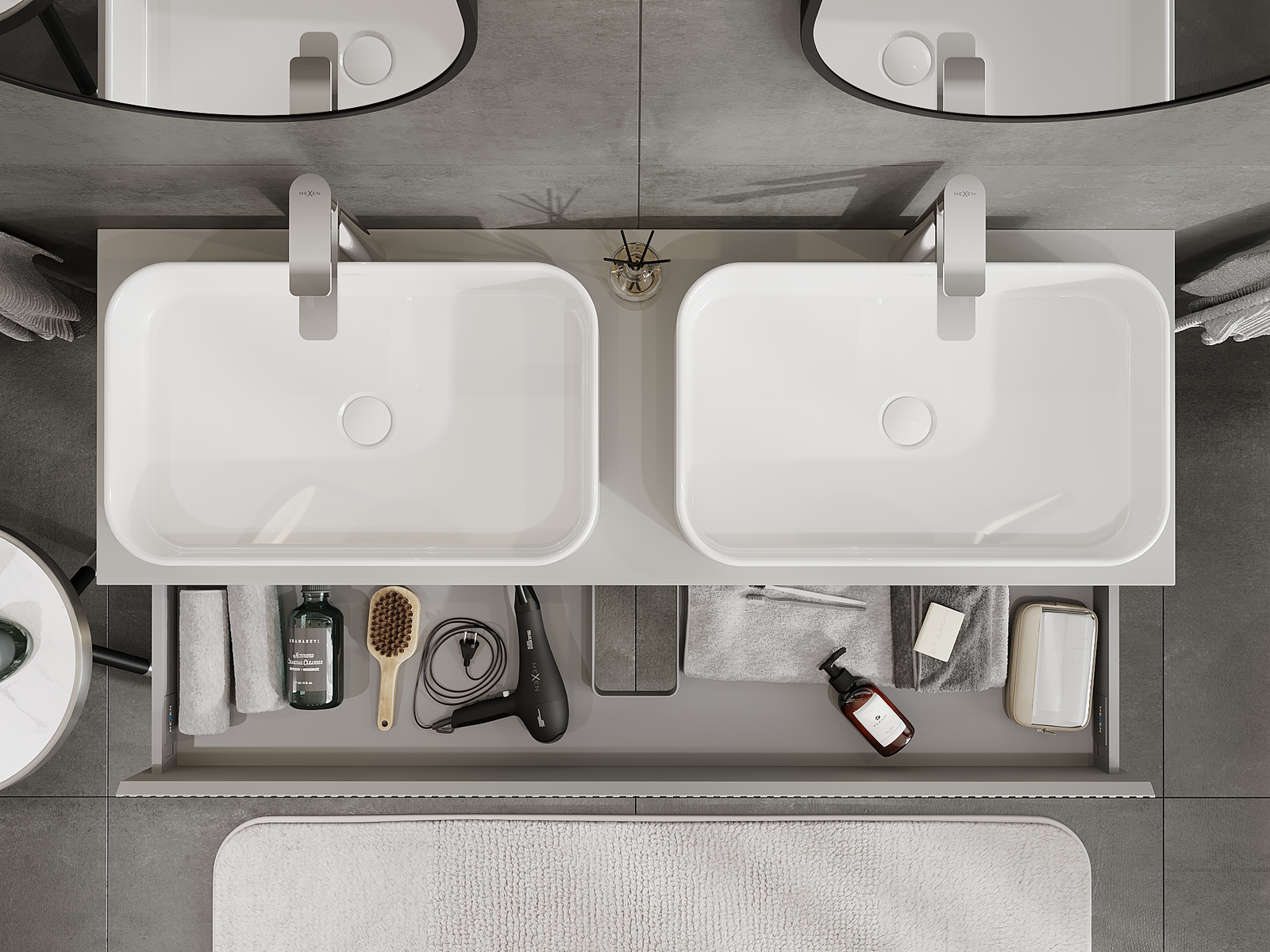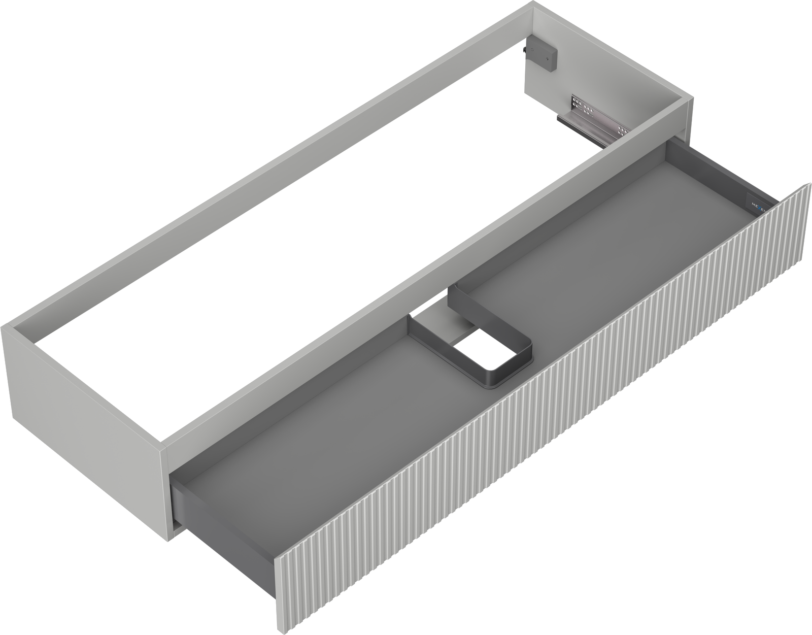 A fiókban lévő kivágás úgy van kialakítva, hogy befogadja a mosdó telepítéseknél szükséges szifont. Ennek köszönhetően a bútor teljesen funkcionálisan felszerelhető anélkül, hogy a fiók terének egy részét fel kellene áldozni a telepítés miatt.