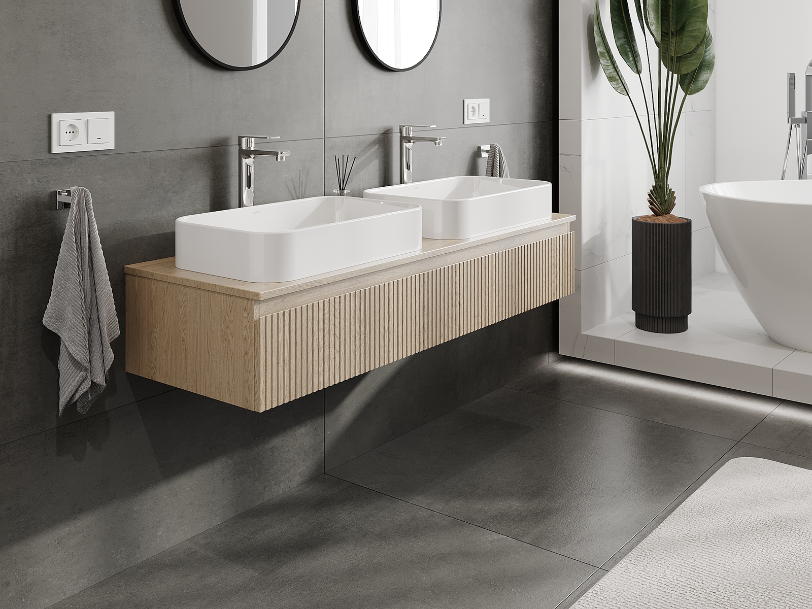 Mexen Rivel fürdőszobai mosdószekrény 140 cm, 1 fiók, bordázott, tölgy - 91A20-14023-1-BF81