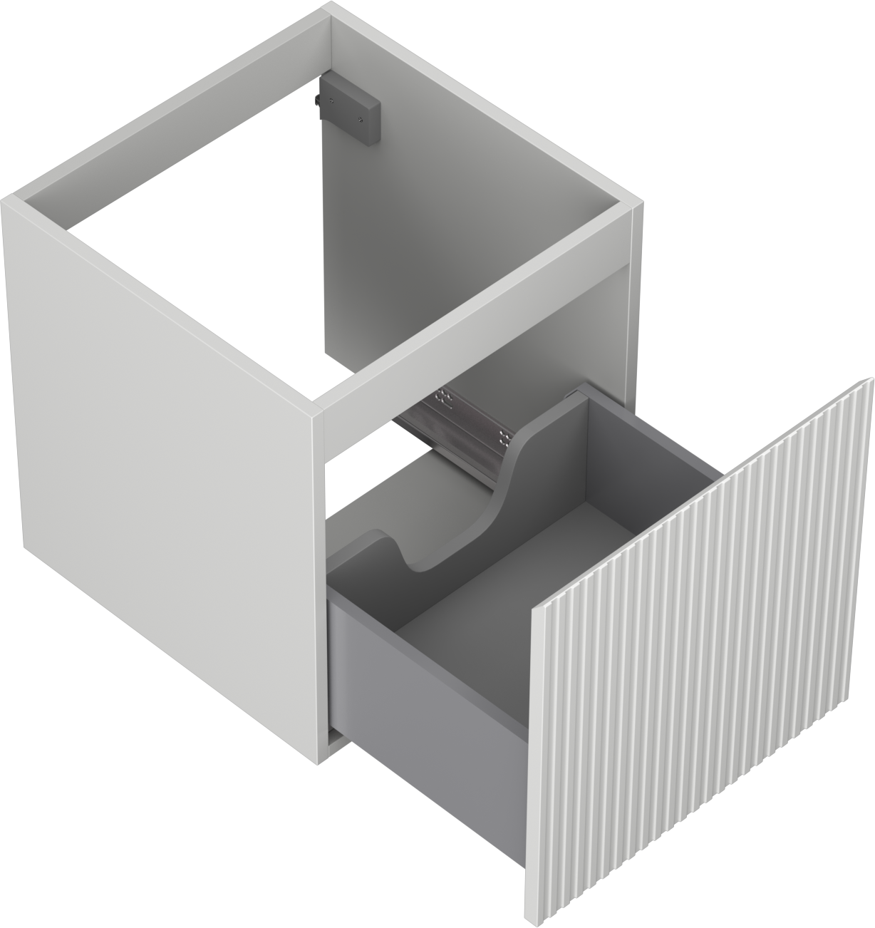 A fiókban lévő kivágás úgy van kialakítva, hogy befogadja a mosdó telepítéseknél szükséges szifont. Ennek köszönhetően a bútor teljesen funkcionálisan felszerelhető anélkül, hogy a fiók terének egy részét fel kellene áldozni a telepítés miatt.